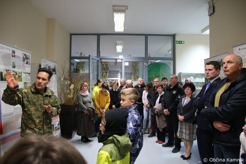 Ob tej priložnosti sta zbrane pozdravila ravnateljica Osnovne Marije Vere Violeta Vodlan in predsednik Območne enote veteranov vojne za Slovenije Kamnik – Komenda mag. Zvonko Cvek, ki sta poudarila, da je prav, da se polpreteklih časov spominjamo, jih oživljamo in njihov pomen prenašamo na mlajše rodove, pričujoča razstava pa bogati tudi pedagoško delo. Vodja skupine za muzeologijo Vojaškega muzeja Slovenske vojske, major mag. Zvezdan Marković je ob tej priložnosti dejal, da s kamniškega območja prihaja tudi ena od žrtev osamostvojtvene vojne, gospod Edvard Peperko in med drugim povedal: »Malokdaj se zavedamo izjemnega uspeha našega naroda, ki je bil vedno na tako imenovanem prepihu. Uspelo nam je obstati tukaj in doseči, da imamo lastno državo ter smo smo v družbi enakopravnih članic in članov Organizacije Združenih narodov, kjer imamo status nacije. To je izjemen uspeh. Razstava, ki potuje, in hvala lepa gospe ravnateljici za to, da nas je sprejela, ter mag. Zvonku Cveku za pobudo, predstavlja konceptualni pregled dogajanja konca 80 let in začetka 90 let.«