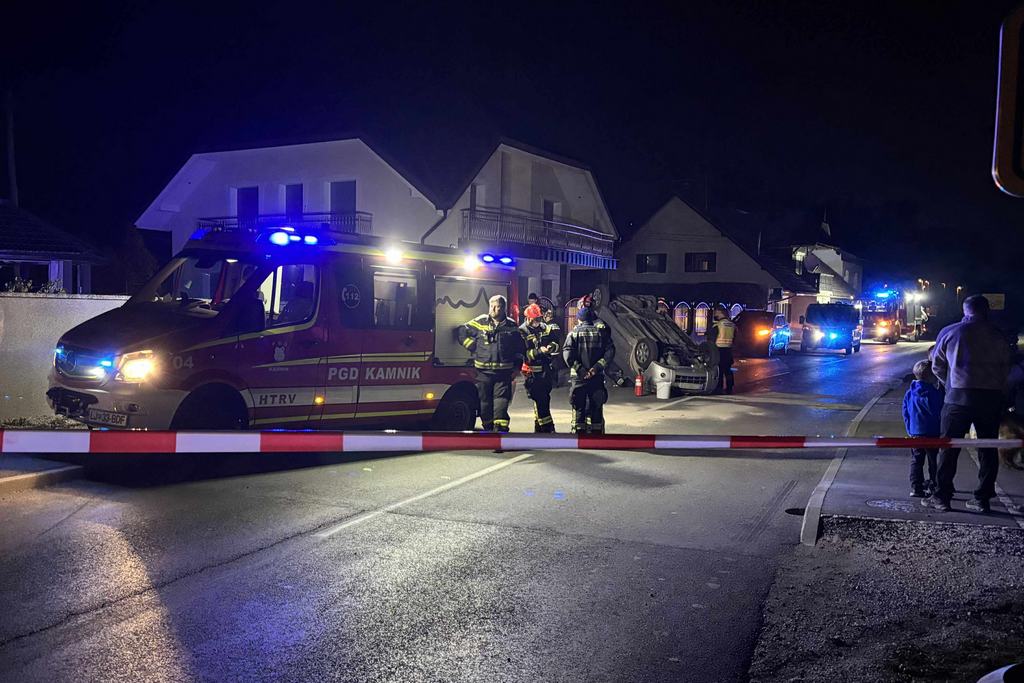 V petek zvečer (7.11.2025), malo pred 19. uro, je v Podgorju pri Kamniku prišlo do prometne nesreče, v kateri je bil udeležen voznik, ki je z vozilom zapeljal na odbojno ograjo, zletel s ceste, podrsal betonsko ograjo stanovanjske hiše in obstal na cesti prevrnjen na streho.