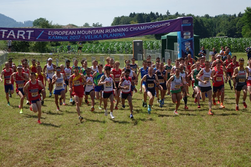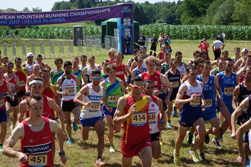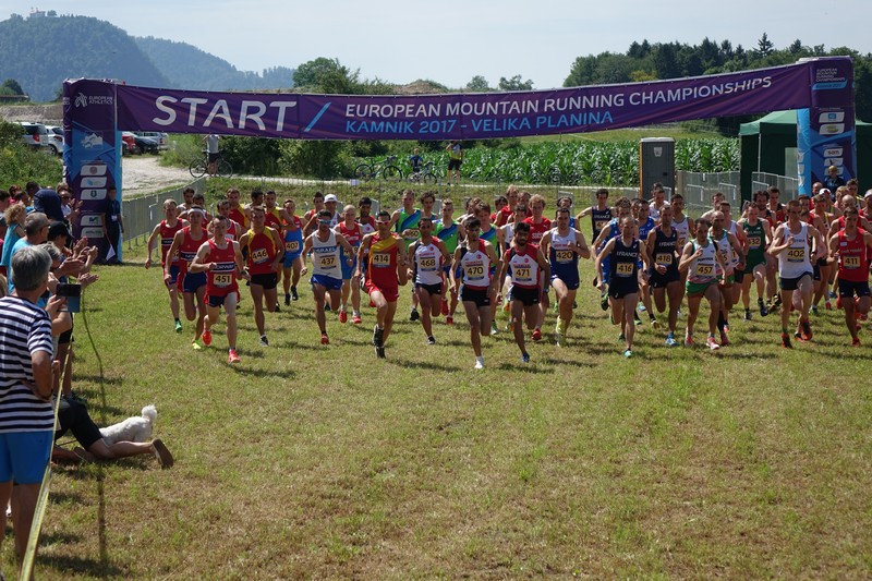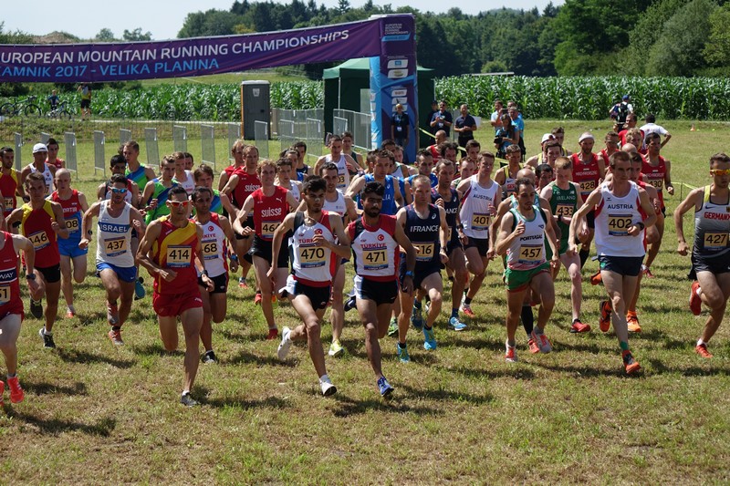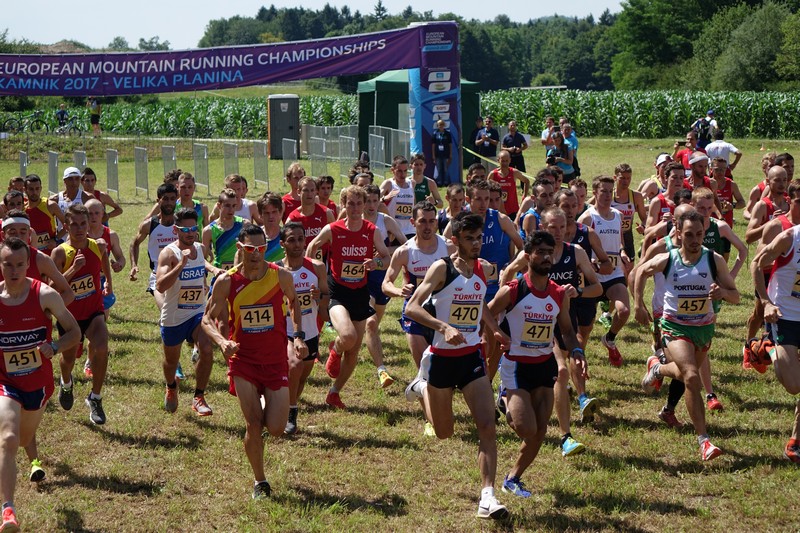 Ob 11:15 so se na prot proti vrhu Velike planine podali tudi najboljši evropski gorski tekači, ki se bodo pomerili za naslov evropskega prvaka v gorskih tekih.