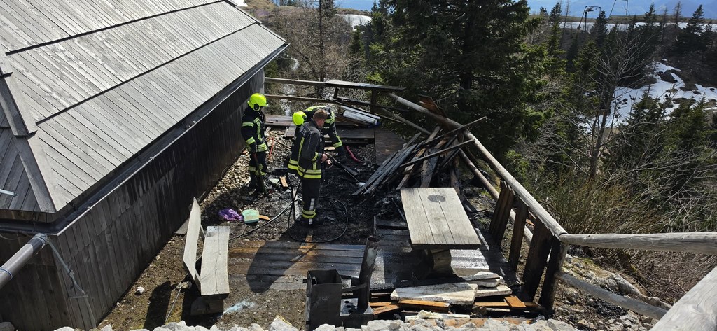 Požar, katerega steber dima je bil dobro viden tudi iz doline, pa ni povzročil kake večje škode, saj k sreči ni zagorela sama koča, ampak masažna kad na terasi pred njo.