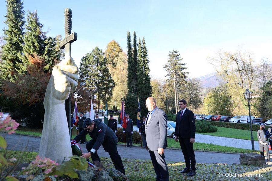 Slavnostni govornik, župana Matej Slapar pa je ob letošnji slovesnosti pozdravil vse zbrane v imenu Občine Kamnik in med drugim poudaril: » Njim, katerih spomenik v spomin stoji pred nami in številnim drugim padlim v različnih vojnah in po njih, se spoštljivo poklanjamo v teh dneh in na njih grobovih ter obeležjih prižigamo sveče ter polagamo cvetje. Članice in člani različnih domoljubnih društev in organizacij s predanostjo ohranjate njihove zgodbe žive, s čimer omogočate, da vsako leto znova izrazimo hvaležnost za njihov prispevek k svobodni Sloveniji in miru, v katerem danes živimo. Njihove borbe in upanje v boljši, pravičnejši svet nas vse skupaj navdihujejo.