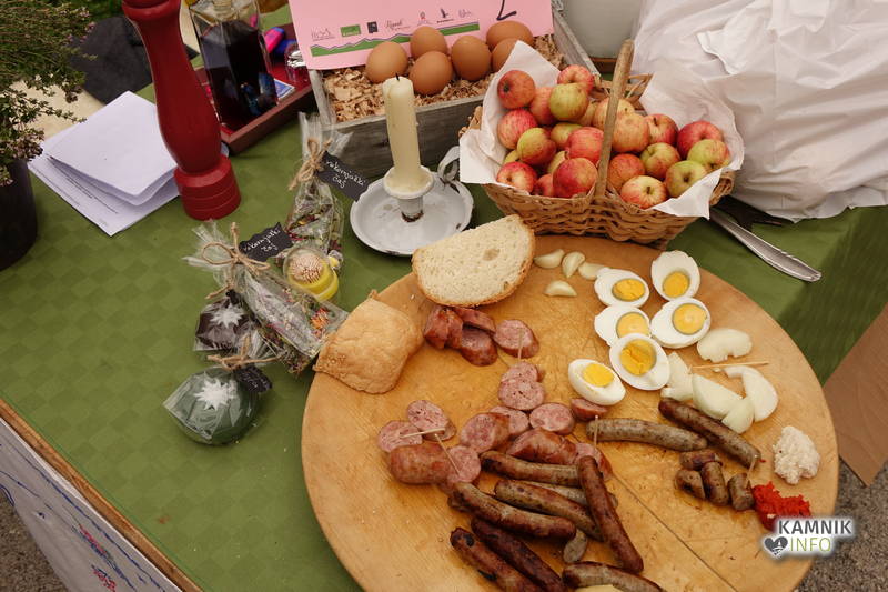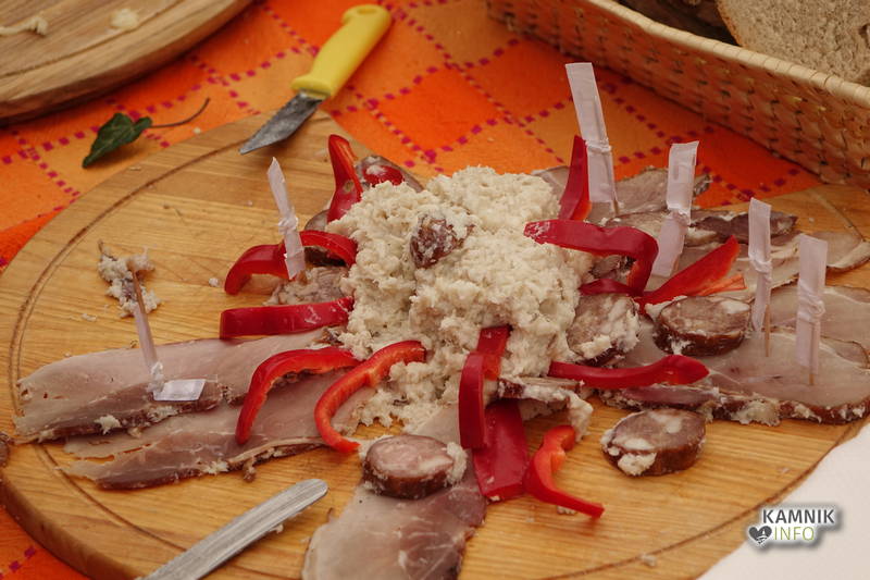 Miza ekipe Turističnega društva Hoče, ki so bili na letošnjem tekmovanju edina gostujoča ekipa, se je kar šibila pod težo najrazličnejših dobrot, ki se jim je že na daleč videlo, da so domačega porekla, pa najsi je šlo za zaseko, šunko ali pogačo, da vsega sploh ne naštevamo.