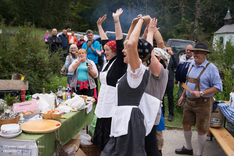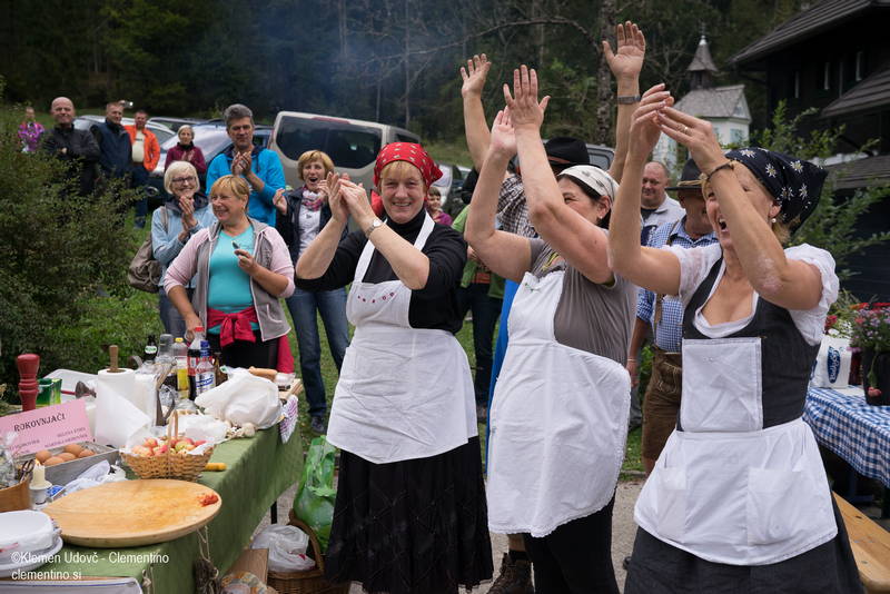 Prav lično urejena je bila tudi miza ekipe »Rokovnjači«, ki se ji je, kljub robustnemu imenu, poznala prisotnost treh parov ženskih rok, bistriških sester Olge, Helene in Marinke, ki so imele s seboj, za težja opravila, še »hlapca« Andreja, ki je skrbel za težja dela v gospodinjstvu ter stražo pred bistriškimi tolovaji, ki so že od nekdaj namazani z vsemi žavbami.