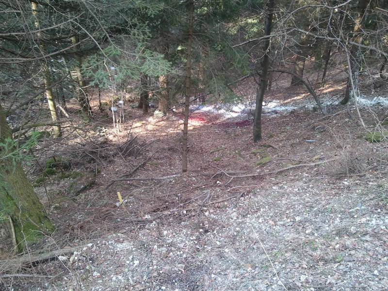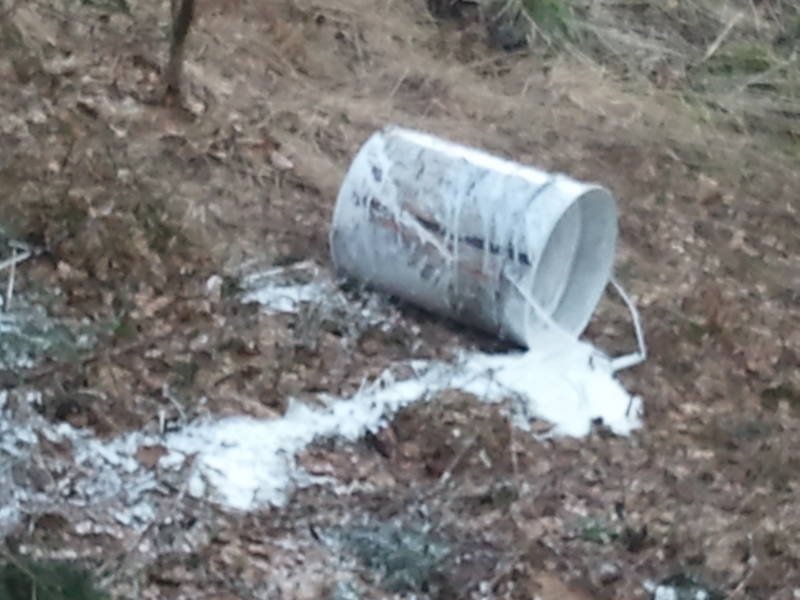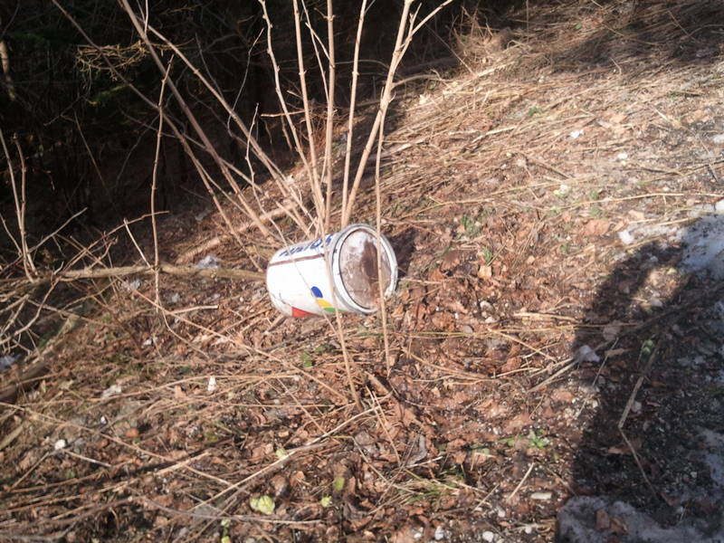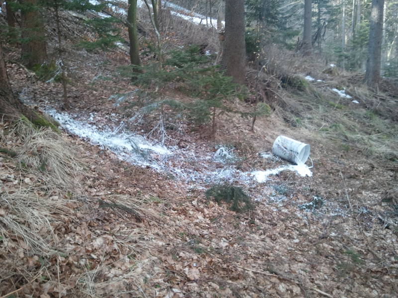 Zaenkrat še neznani storilec, da ne rečemo kar objestni onesnaževalec, je na območju med Kališem in Kranjskim Rakom odvrgel večjo količino posod z barvo. Večina posod je bila sicer prazna, vendar ne vse, zato je moč pod cesto med obema krajema pod Veliko planino, videti pravo razdejanje.