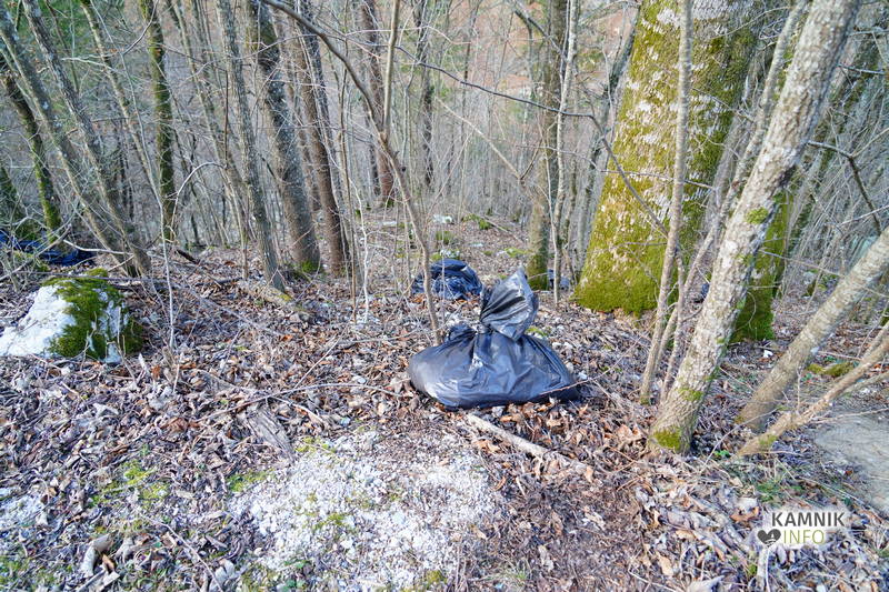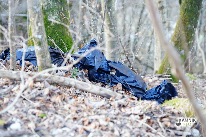 Včeraj zvečer nas ena izmed naših bralk opozorila, da se pod in ob cesti v Kamniško Bistrico, nekako od studenčka Pri koritu oz. še nekoliko niže, pa vse do grobišča na Smrekovcu, nahaja večja količina črnih plastičnih vreč z zelo smrdečo vsebino.