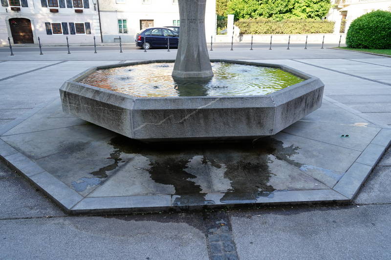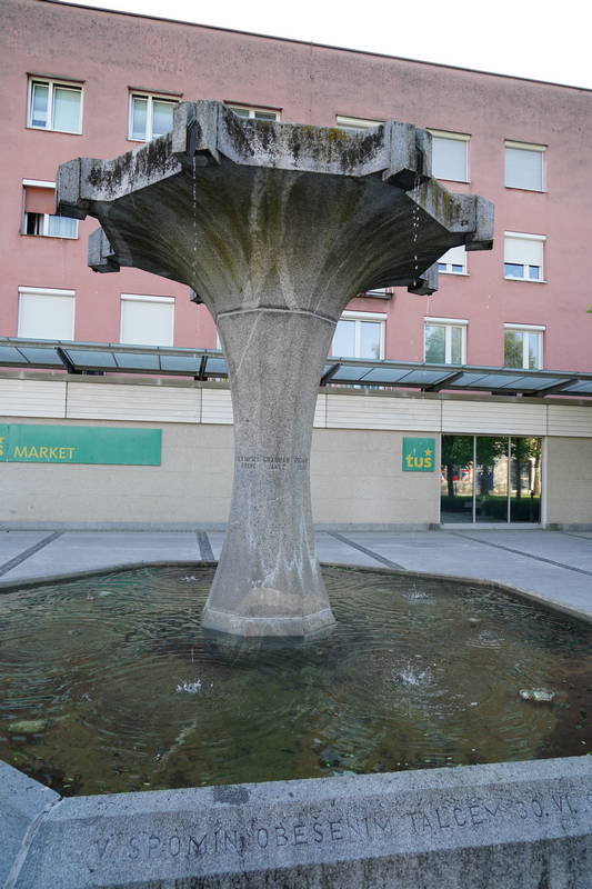 Na Trgu talcev je bila fontana postavljena leta 1972, zdajšnji pogled nanjo pa nehote daje občutek, da je bila nekako takrat tudi zadnjič očiščena.