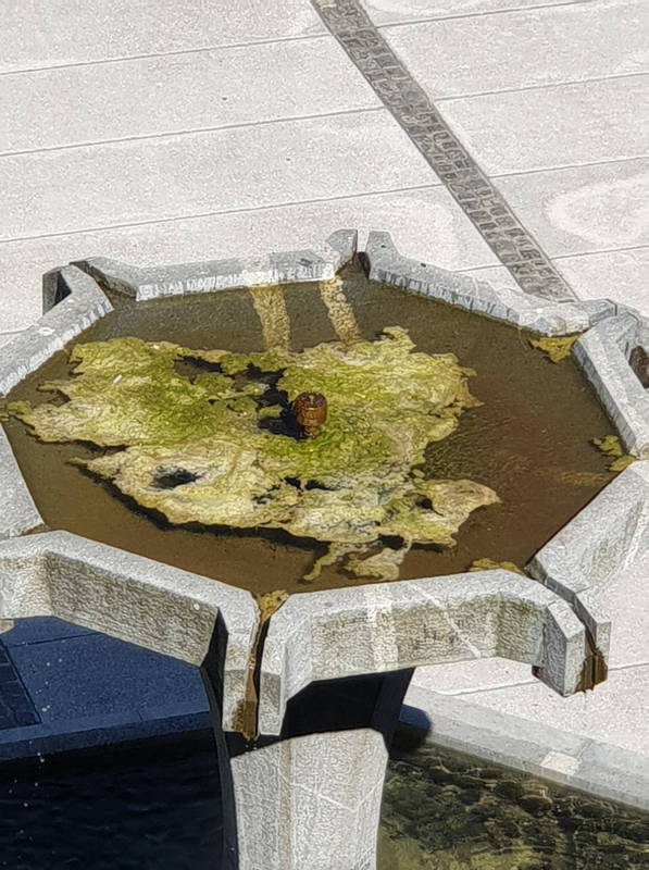 Občina Kamnik namreč tudi v samem središču mesta vzorno skrbi za zelenje in biodiverziteto kamniške flore in faune. O tem neizpodbitno priča fontana na Trgu talcev v Kamniku, v in ob kateri so se razrasle alge, mah ter plevel, bržkone pa bi bilo moč v zgornji etaži moč najti tudi že kakega paglavca, če že ne kar celega žabjega mresta.
