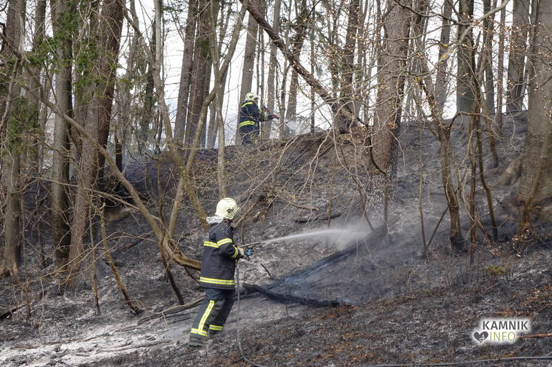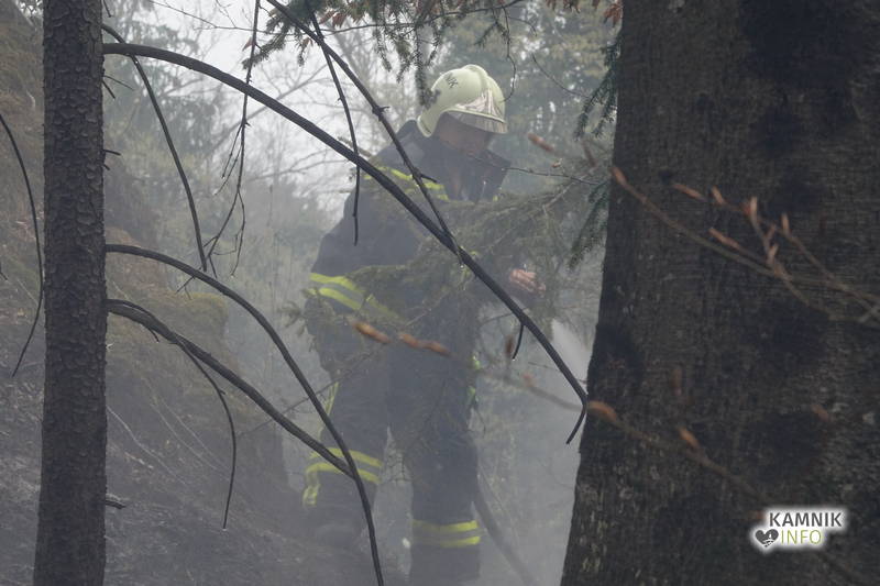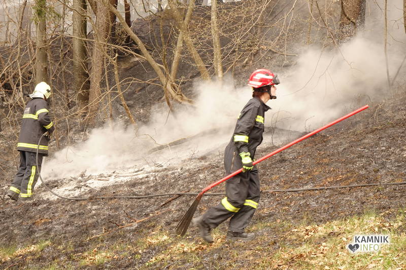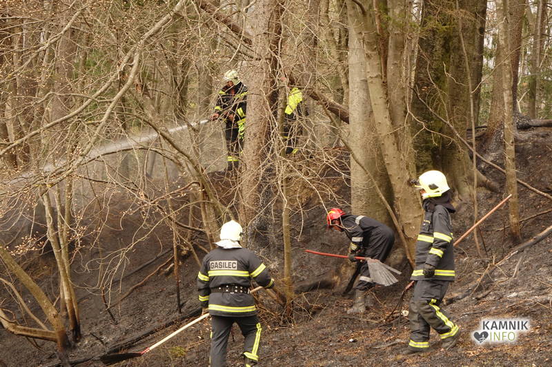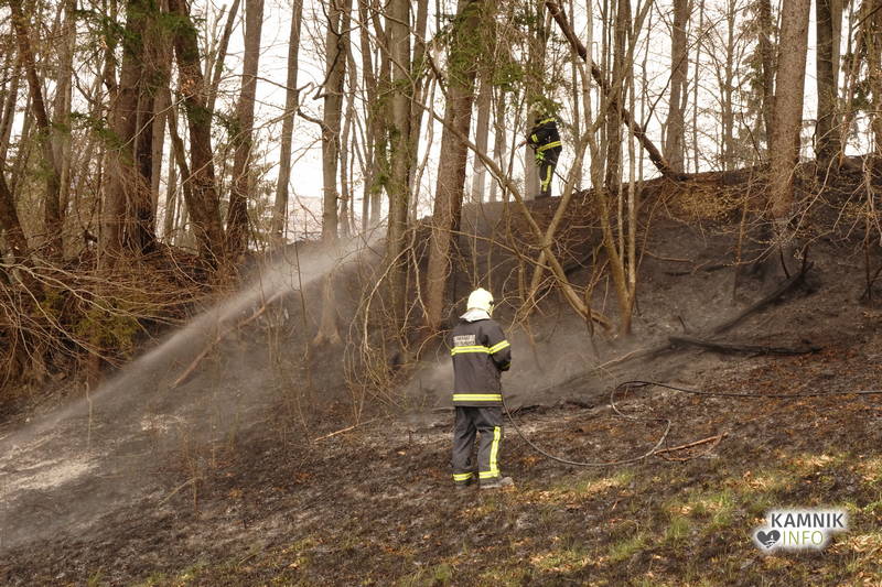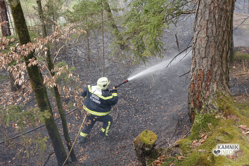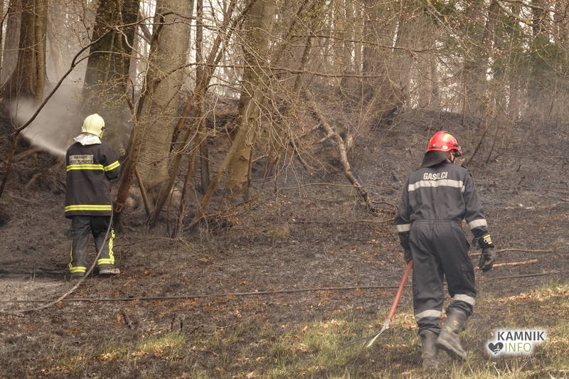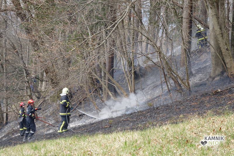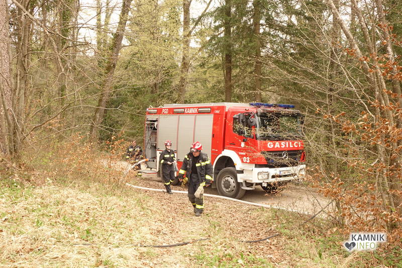 Pozivu na pomoč so se odzvali gasilci PGD Kamnik in PGD Tunjice, ki so s hitrim in učinkovitim posredovanjem, v domala zadnjem trenutku preprečili, da bi se ogenj, ki je zajel kak hektar travniške in gozdne površine, ob izdatni pomoči vetra, iz travnika in obronkov gozda preko makadamske ceste in grebena pobočja razširil tudi v gosto podrast in gozd na drugi strani pobočja.