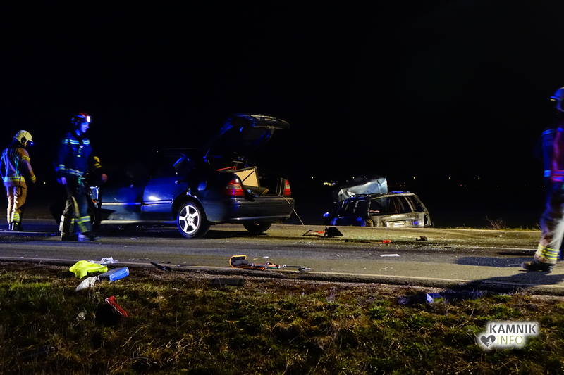 Včeraj zvečer, malo pred 19. uro, je na regionalni cesti Mengeš – Kamnik, v bližini odcepa za Drnovo, prišlo do silovitega čelnega trčenja dveh vozil, po katerem je eno izmed vozil celo zagorelo.
