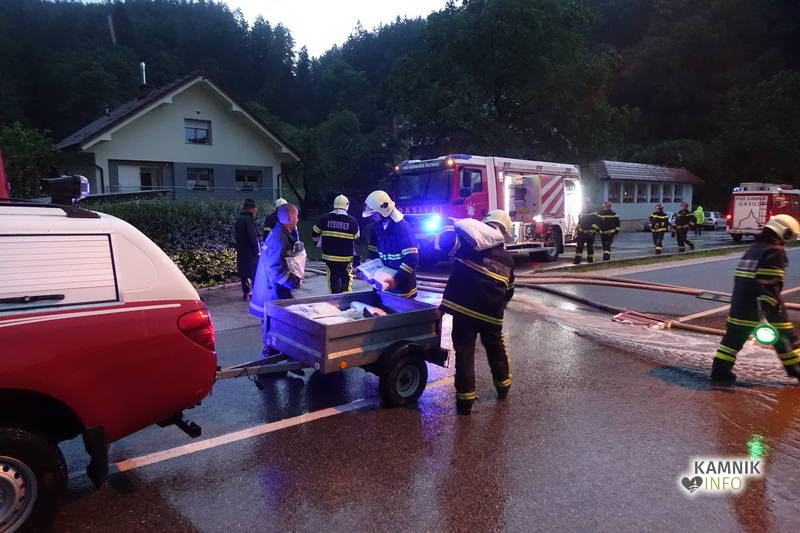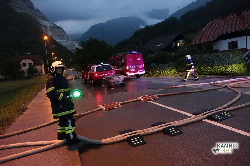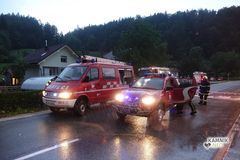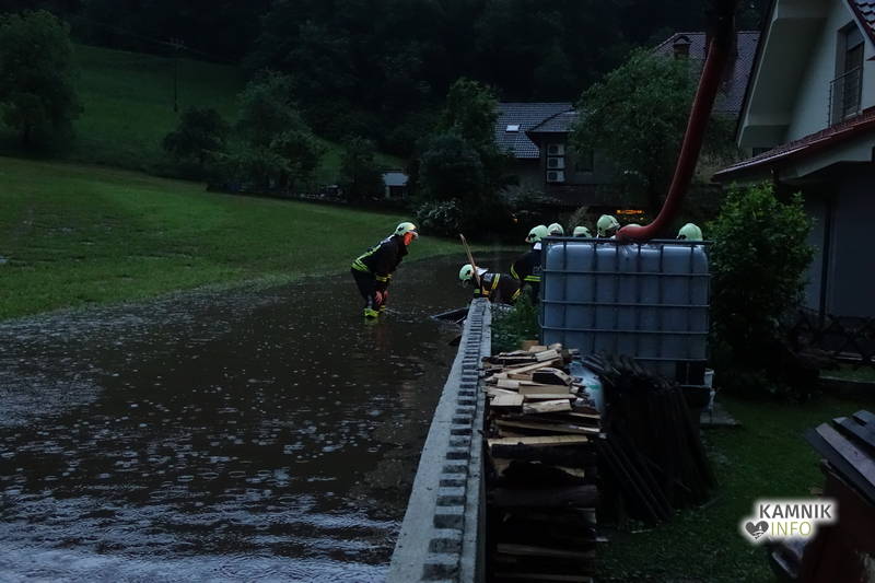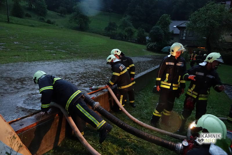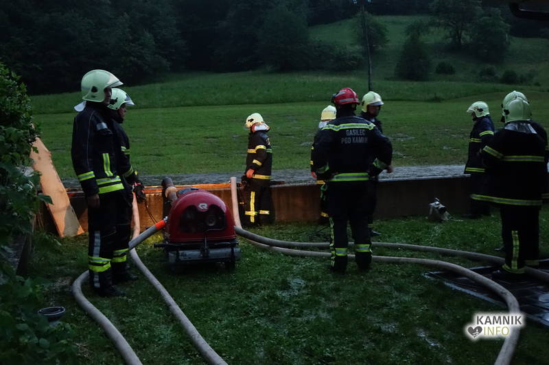 Klicu na pomoč so se odzvali gasilci PGD Kamniška Bistrica in PGD Kamnik, ki z več črpalkami že več kot dobro uro prečrpavajo celo jezero meteorne vode, ki se je domala zlila po pobočju nad gostilno Pri planinskem orlu v Stahovici ter se začela zlivati in prelivati prek opornega zidu nad hišami.