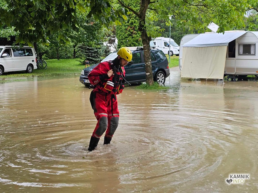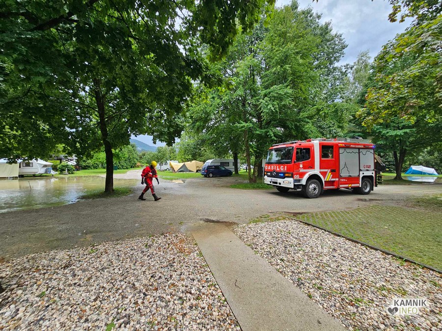 Nevihta je precej prestrašila tudi goste nastanjene v kampu Resnik Pod Skalco, v katerem se je, zaradi zamašenih odtočnih kanalov, hitro začela nabirati voda, ki je grozila, da bo zalila vozila na parkirišču ter tudi prikolice in šotore, ampak zaenkrat, razen večjih in precej globokih luž, ni bilo hujšega. Gasilci so odprli jaške ter jih očistili, s čemer so preprečili nastanek materialne škode, gostje pa so se že pred tem preventivno umaknili na varno.