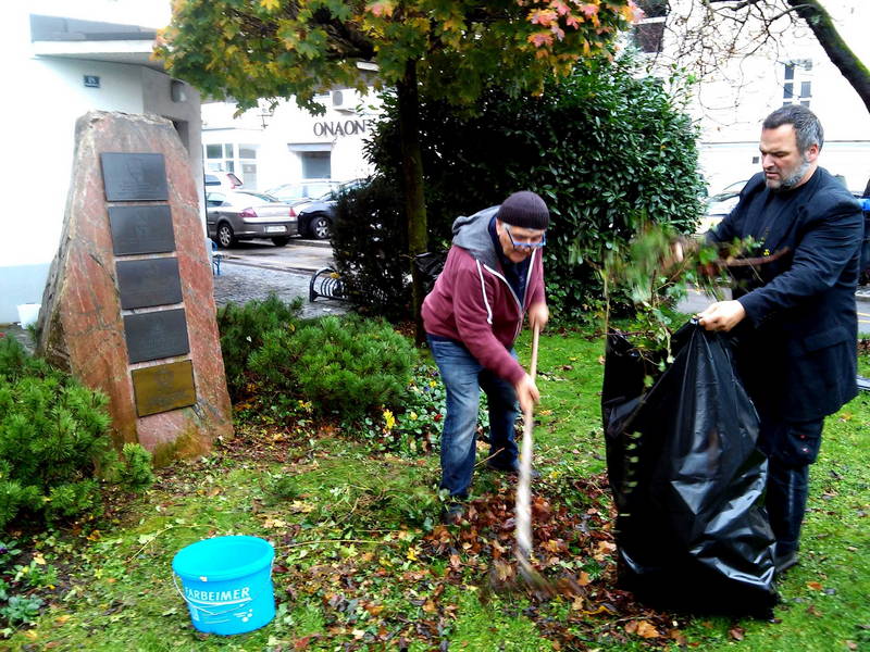Po večkratnih in dolgotrajnejših opozorilih, da je spominsko obeležje pri kamniški avtobusni postaji preraščeno, zanemarjeno in umazano, ki pa so, kot smo v naši občini že vajeni, naletela na gluha občinska ušesa, se prva diverzantska trojka kamniških kulturnikov, pod vodstvom pobudnika in kolovodje Dušana Sterleta, danes lotila samovoljne in nepooblaščene, skorajda diverzantske čistilne akcije.