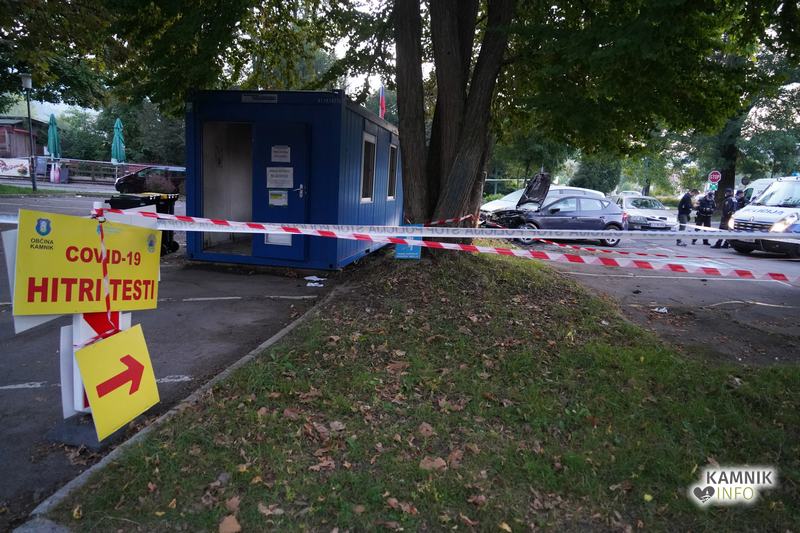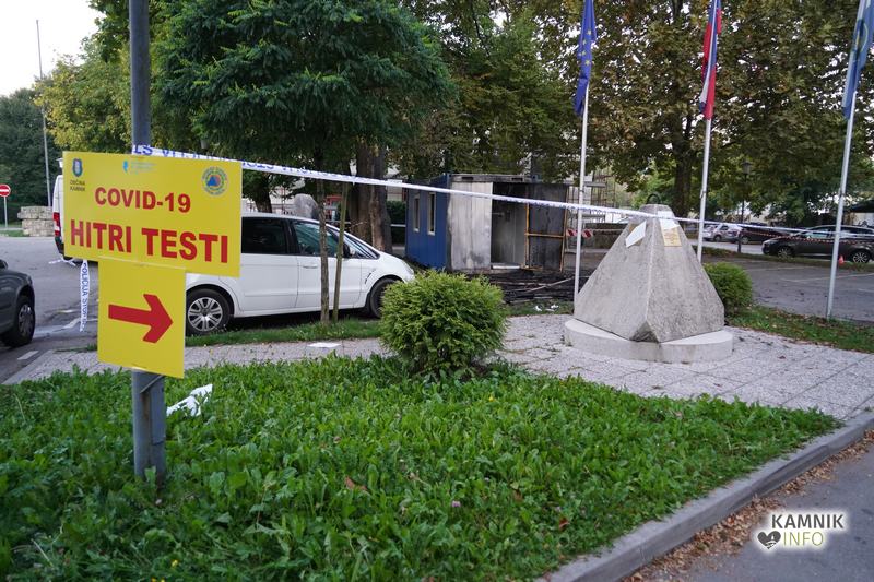 Danes ponoči, okoli 1:15, je v Kamniku prišlo do požara COVID-19 testne točke, ki se nahaja na parkirišču pri Domu kulture Kamnik. V požaru je povsem pogorela sprejemna lesena hiška, močno poškodovan oz. povsem uničen je tudi kontejner v katerem se je izvajalo hitro testiranje, ognjeni zublji pa so poškodovali tudi tri v bližini parkirana vozila, pri čemer je eno vozilo najbrž uničeno, dve vozili pa poškodovani.