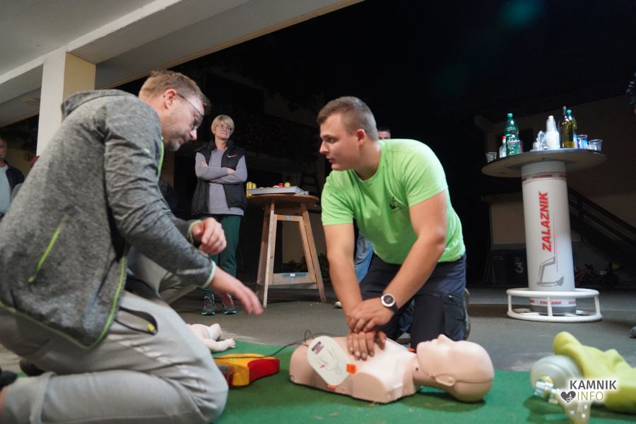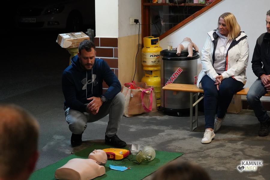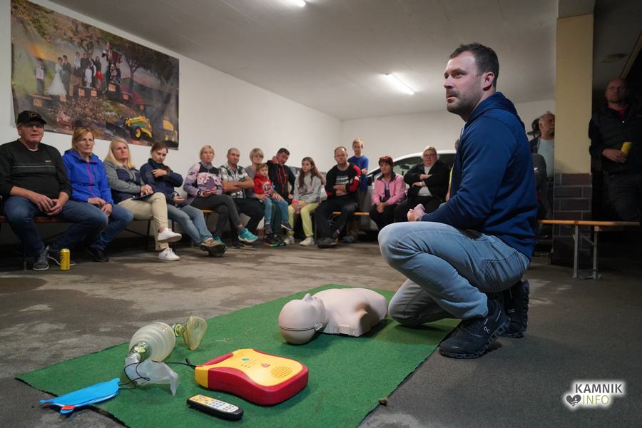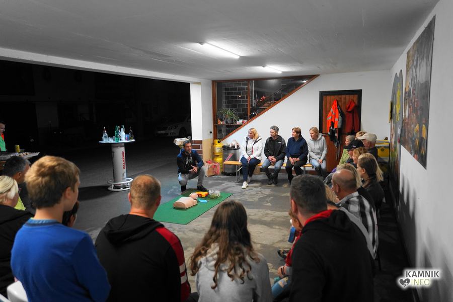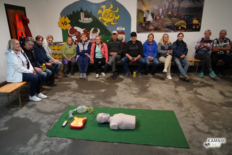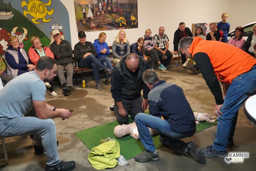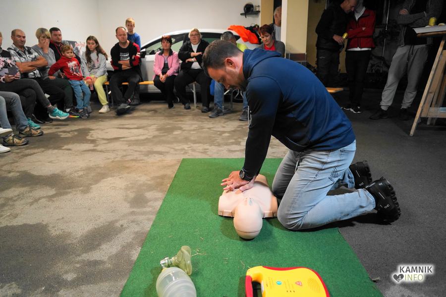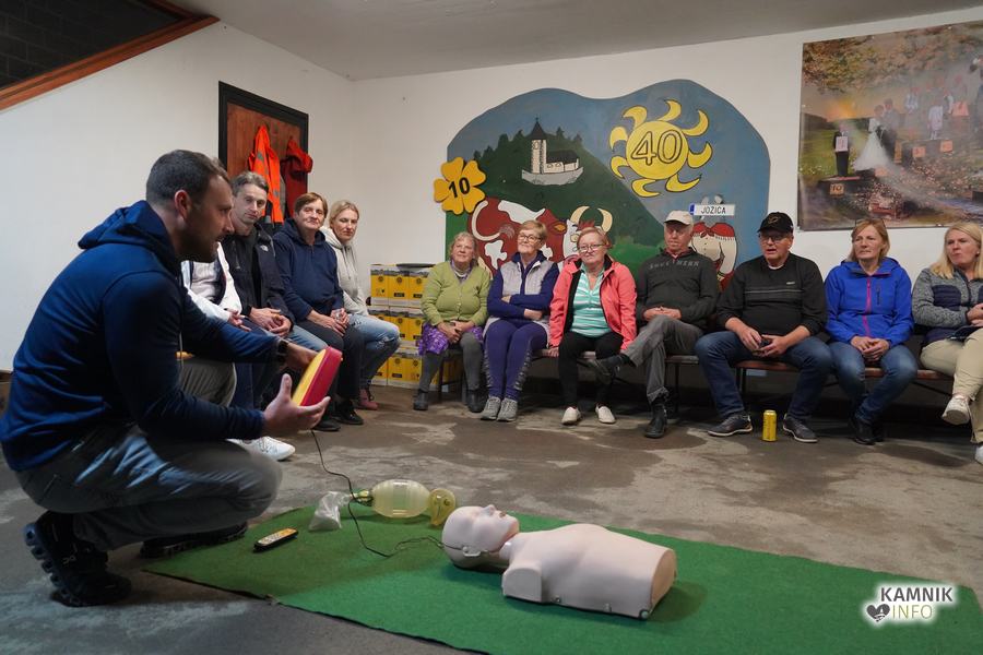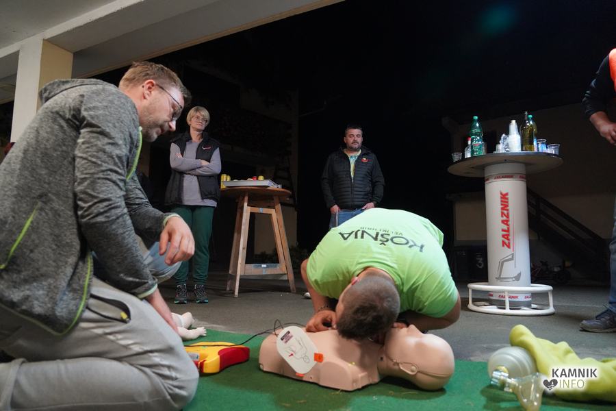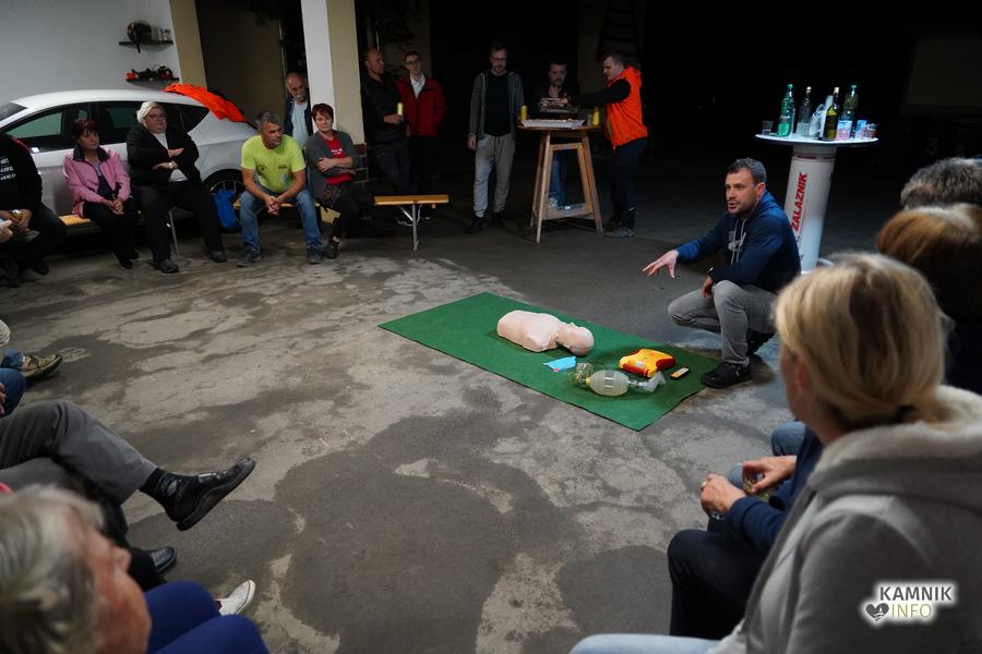 V goste so povabili Gašperja Simeunoviča, reševalca Nujne medicinske pomoči Kamnik, ki je v zavetju Zalaznikove domačije vse prisotne na zanimiv, preprost in jasen način, najprej seznanil s temeljnimi postopki oživljanja in pravilne uporabe AED naprave, nato pa odgovoril tudi na številna najrazličnejša vprašanja, s katerimi je uspel na sproščen način razbliniti tako morebitne predsodke, kot tudi (neupravičen) strah pred napačno uporabo naprave.