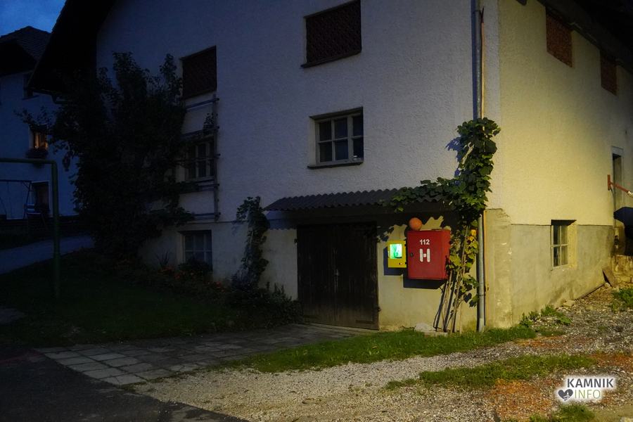 AED naprava na Velikem hribu, ki je nameščena sredi vasi na steni Zalaznikovega hleva, je prosto dostopna 24 ur na dan; kot so nam povedali vaščani, pa bo vključena v javno mrežo AED naprav v Občini Kamnik.