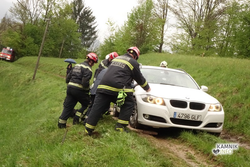 Gasilci PGD Kamnik so že drugič v tem tednu že drugič v posredovati na blatnem kolovozu med Žalami in Košišami, kjer je danes ponovno obtičalo vozilo.