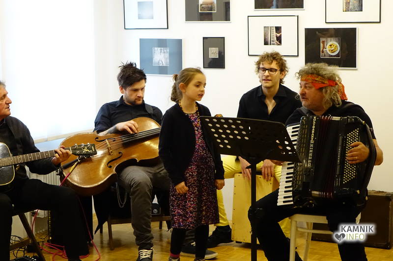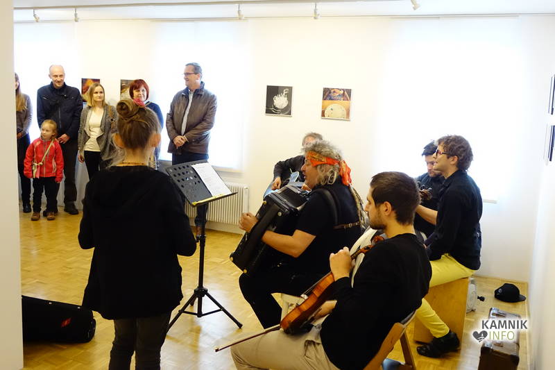 Kot že rečeno, so odprtje razstave z glasbo popestrili člani zasedbe Kontrabant z mlado gostjo, ki so pravzaprav avtoričin »hišni ansambel«.