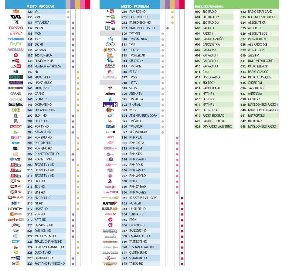 V Zavodu KKS Kamnik so v začetku meseca junija preuredili programsko shemo, tako da so vsem vključenim programom dodelili stalno programsko mesto. S tem so določili vrstni red programov kakršen bi moral biti pri naročnikih doma po vsaki samodejni posodobitvi najnovejših televizorjev.