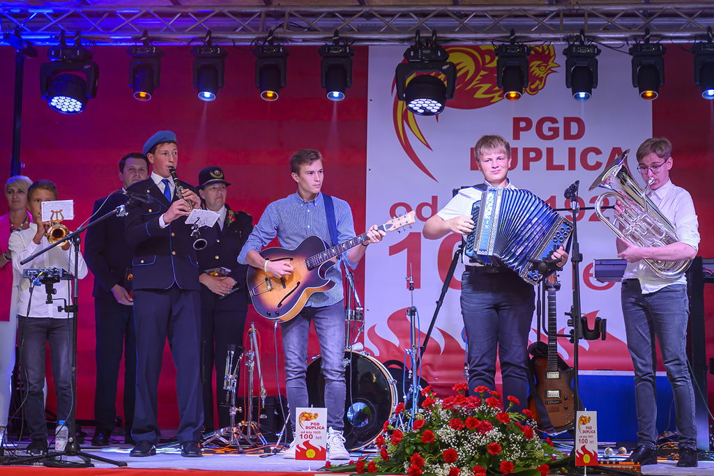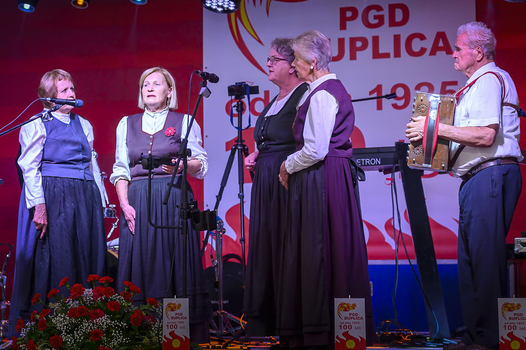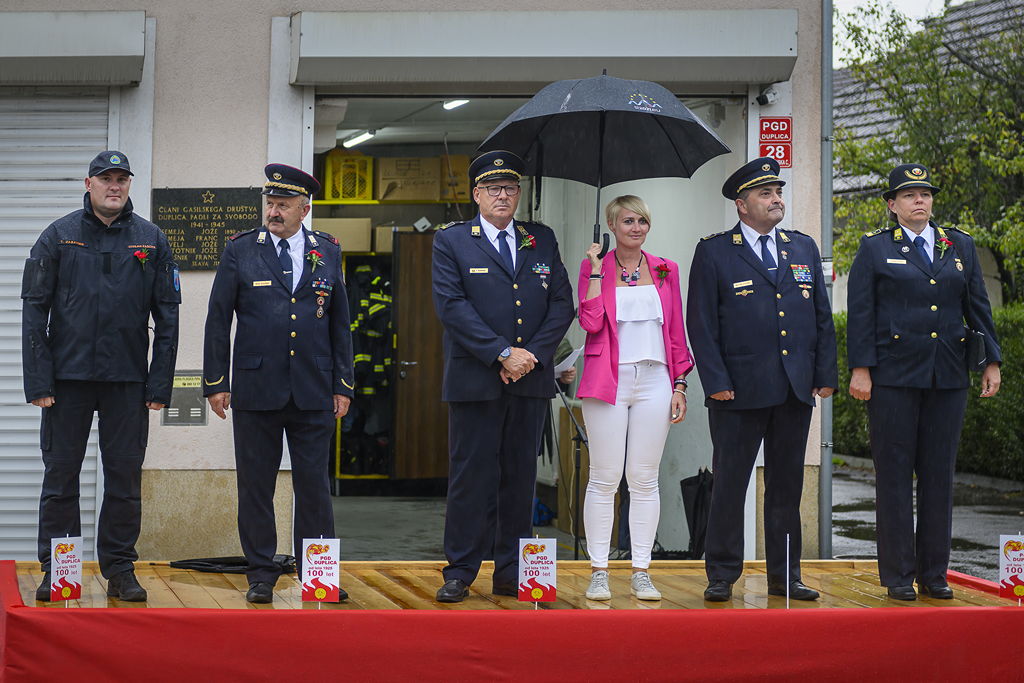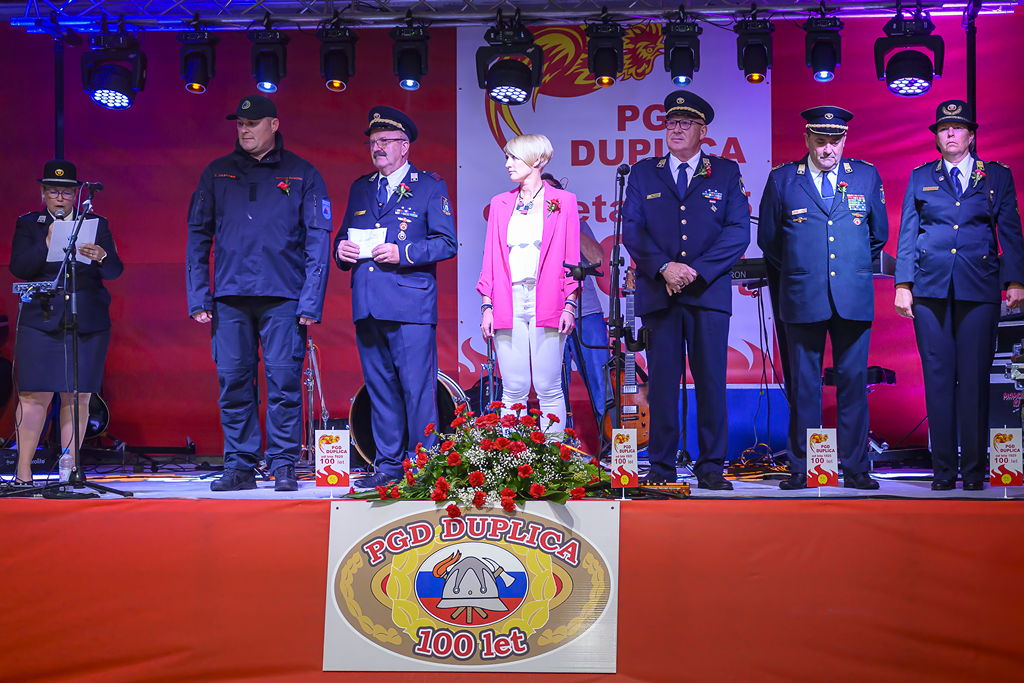 Osrednji del prireditve je bila svečana proslava, kjer smo z besedami predsednika PGD Duplica, tov. Vilkom Dobovškom, poleg vpogleda v stoletno zgodovino gasilstva na Duplici, slišali kako se društvo trudi sedaj in tudi pogledali v prihodnost z besedami: »Začenjamo novo obdobje, obdobje z novimi izzivi. Naša prva naloga v prihodnjem obdobju bo gradnja novega gasilskega doma, zasnovanega za sedanjost in prihodnost. Lokacija je že določena, gradbena dokumentacija je v zaključni fazi, kar pomeni, da smo zelo blizu konkretnemu začetku gradnje,« je poudaril Dobovšek in med prihodnjimi nalogami izpostavil še posodobitev voznega parka, »sodobna vozila pomenijo hitrejše in varnejše odzive na intervenciji.«