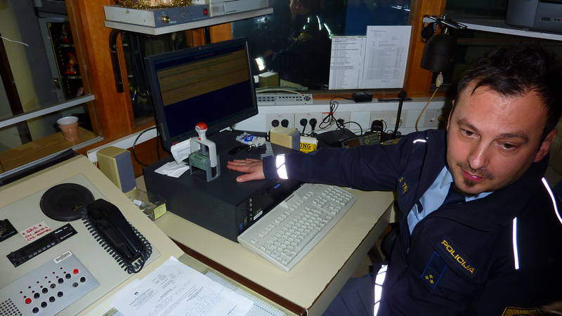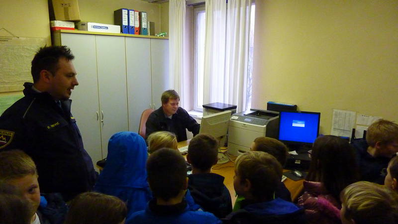 Ogled se je začel v dežurni sobi kjer policisti sprejemajo klice na pomoč, policist Dušan pa je pokazal tudi računalnik s pomočjo katerega policisti preverjajo podatke, ki jih imajo o vsakem izmed nas. Je pa policist Dušan povedal, da računalniki, na katere morajo policisti popisati prav vse, kar se jim tekom delovnega dne zgodi, niso najljubše orodje policistov in da so raje na terenu. Glede na to, da so policijski računalniki stari vsaj toliko, če ne še kako leto več, kot učenci, ki so bili tokrat na obisku, jih gre povsem razumeti.