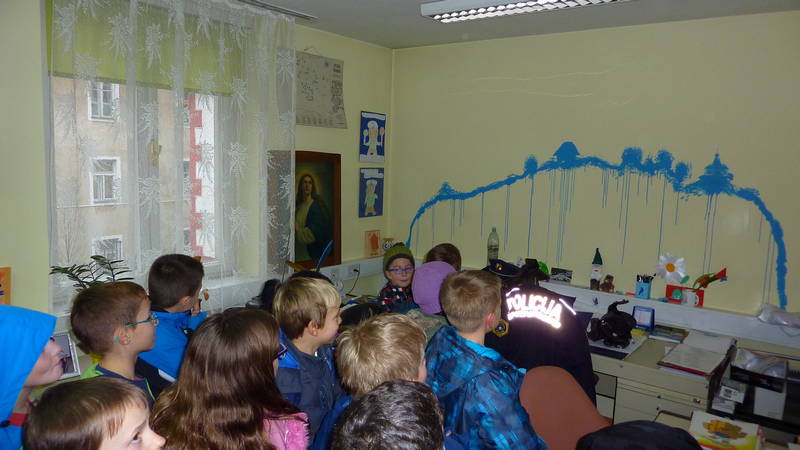 V zahvalo za lepo darilo je policist Dušan, ki mu gre priznati, da se v družbi otrok znajde več kot odlično, učencem 3.A razreda podrobno razkazal policijsko postajo ter s tem svoje policijske kolege, ki po pisarnah policijske postaje najbrž res niso vajeni otroškega živžava, spravil kar malce v zadrego.