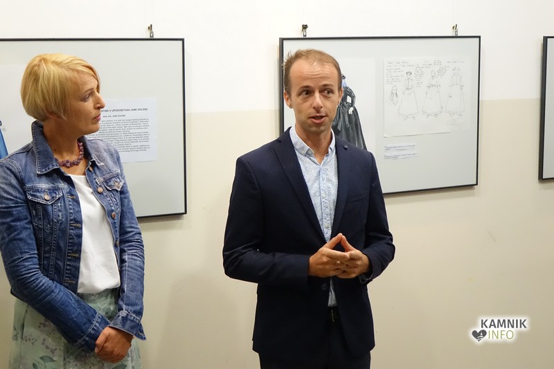 V preddverju občinske stavbe je bila najprej odprta razstava likovnih del akademske slikarje Jane Dolenc, ki predstavlja del avtoričinega bogatega opusa upodobitev slovenskih narodnih noš, žal pa si razstave v soboto in nedeljo ne bo moč ogledati, saj bo Oblačilna dediščina v upodobitvah Jane Dolenc na ogled zgolj v času uradnih ur Občine Kamnik.