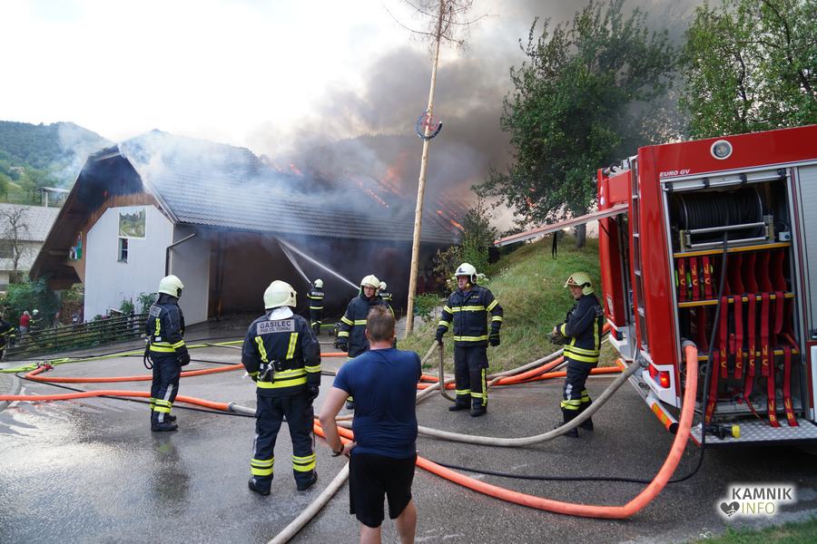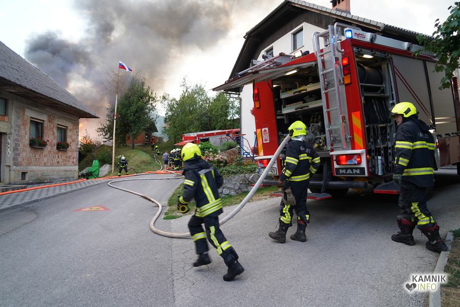 Na Velikem Hribu v Tuhinjski dolini je okoli 18.30 prišlo do obsežnega požara, v katerem so ognjeni zublji zajeli večje gospodarsko poslopje polno suhega sena.