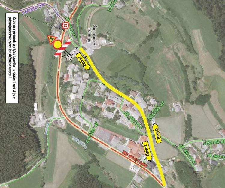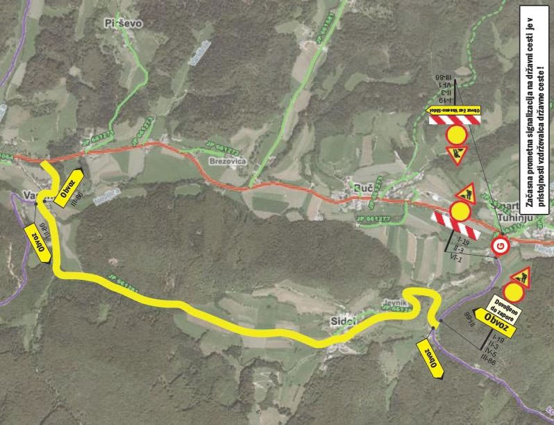 Izvajalec del bo namreč v naslednjih tednih izvajal dela v zvezi s prekopom cestišča na odseku križišča regionalne ceste s cesto proti naselju Sidol in na drugi strani tega križišča.