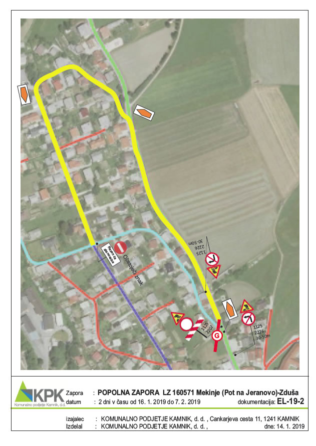 Obveščamo vas, da bo zaradi sanacije meteorne kanalizacije delna zapora lokalne ceste LC 160051 Mekinje-Godič od hišne številke Cankarjeva 49 do hišne številke Cankarjeva 52 in popolna zapora pločnika ne tem delu v času od 14. 1. 2019 do 7. 2. 2019 ter 2 dni v času od 14. 1. 2018 do 7. 2. 2019 zaradi prekopa križišča popolna zapora LZ 160571 Mekinje (Pot na Jeranovo) – Zduša .