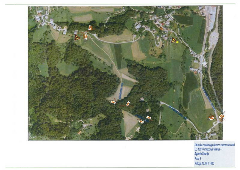- popolna zapora in prekop Spodnje Stranje – Stolnik – Laniše, 1 dan v času od 15. 5. 2018 do 30. 6. 2018. Popolna zapora bo na priključku javne poti na lokalno cesto v Spodnjih Stranjah,