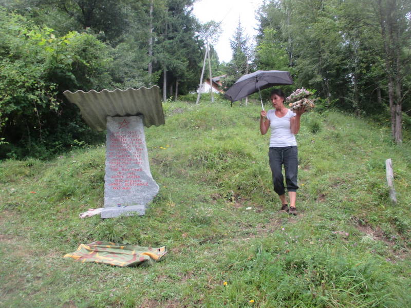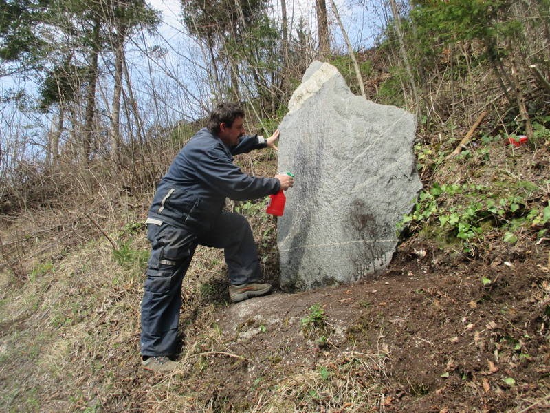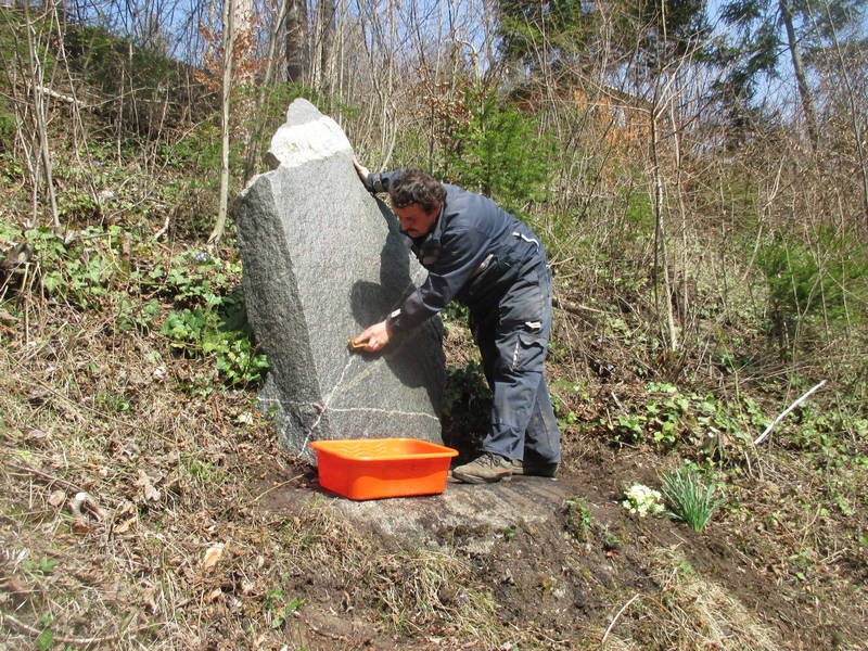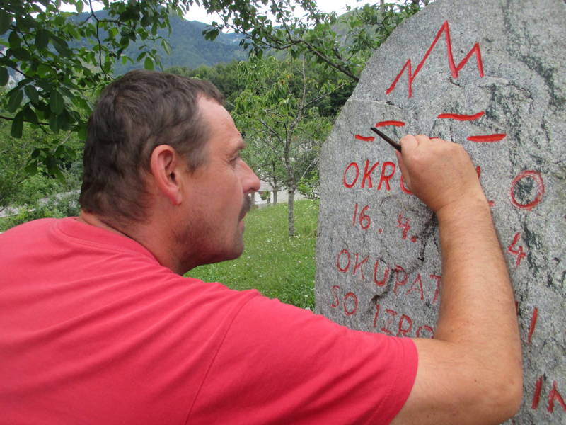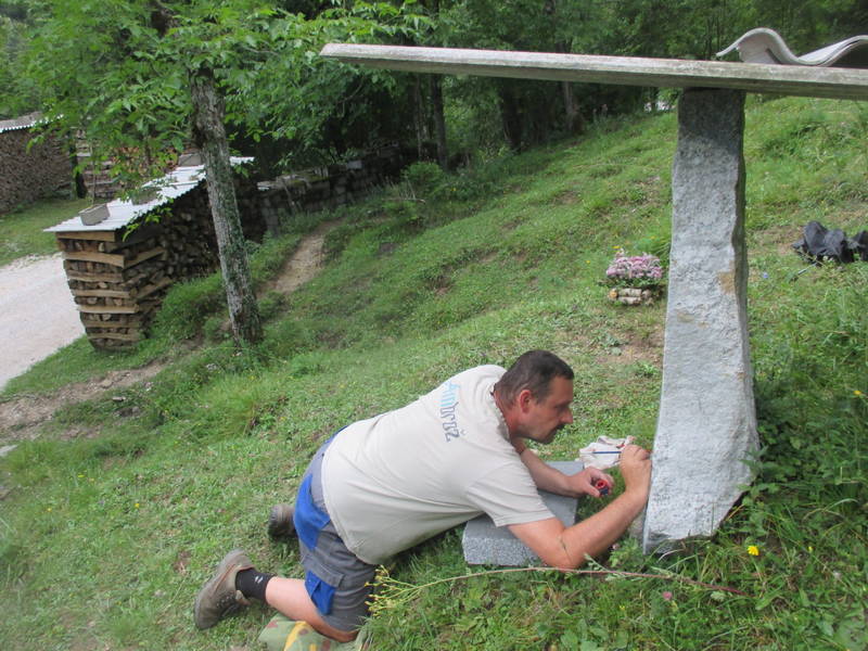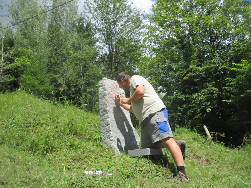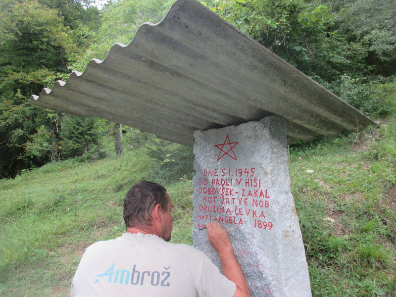 Orodje je bilo še vedno pri roki v prtljažniku avtomobila in ni trajalo dolgo, da so bili pri spomeniku, kjer prav tako ni bilo potrebno zgolj obnoviti napisa, ampak ga je bilo najprej potrebno očistiti tudi alg in lišajev, kar so storili s skupnimi močmi, nato pa je Ivan osvežil še napis, ki spominja na tragične dogodke in žrtve iz časa narodno osvobodilnega boja.