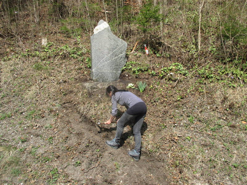 Kljub ne ravno najbolj prijaznemu vremenu sta se s prijateljico Ljubo Prestor najprej lotila čiščenja in osvežitve spominskega obeležja padlim partizanom in domačinom pod vzhodnim pobočjem Krvavca v Zakalu, ki sta ga najprej očistila alg in lišajev, nato pa obnovila še domala povsem zbledel napis, nekoliko uredila še okolico in spominsko obeležje okrasila s preprosto ikebano iz okoliškega cvetja.