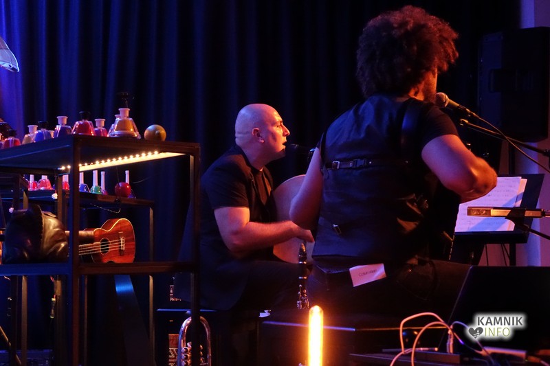 Na čase prav srhljivi zvoki, po večini pa prava plesna glasba začinjena z različnimi zvočnimi efekti so v poslušalcih izvabili mnogo čustev. Čeprav je sama glasba pri njiju raznovrstna in pisana, se je vizualni nastop popolno ujemal s toni harmonike in vseh mogočih inštrumentov, na katere je igral Gombač. Sproščeno vzdušje in prijeten klepet med skladbami je bil odličen odraz prijateljstva med izvajalcema, proti koncu koncerta pa so se pridružili tudi poslušalci.