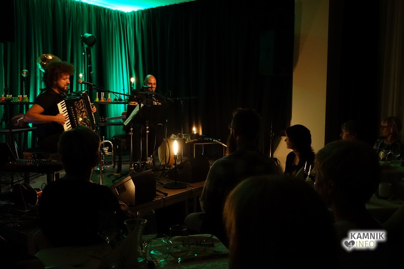 Skupaj z avtorjema so peli, ploskali, ritmično tapkali in se smejali spontanim šalam med izvajalcema, za dobro mero pa sta na koncu zaigrala še na zvonce. Da je bil večer popoln, so bili obiskovalci po koncertu postreženi še s pravo tradicionalno večerjo s pridihom modernizma – tako, kakršna je glasba Dovča in Gombača.
