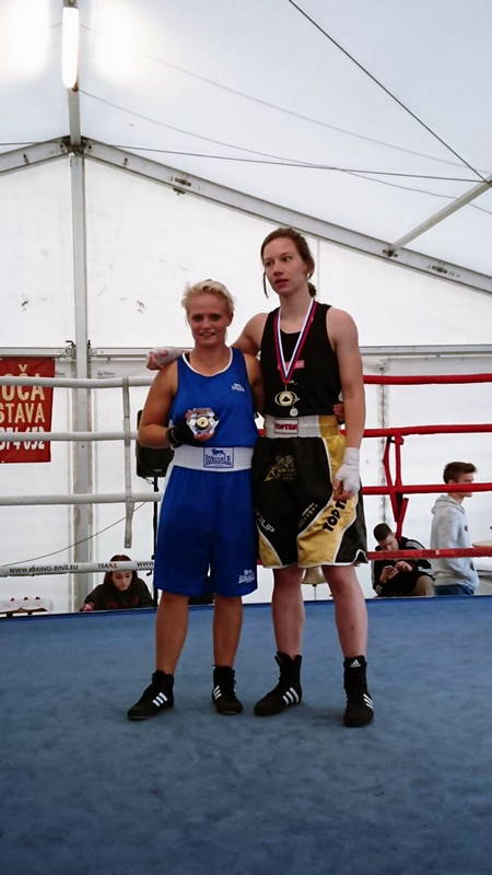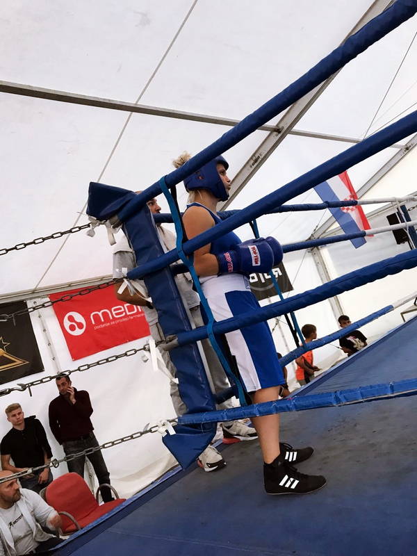 Katarina Kumer se je v kategoriji članic borila proti veliko višji nasprotnici iz Celja in jo premagala. Z veseljem smo opazovali napeto borbo med dekleti, ki sta se goreče borili in dokazali, da tudi punce spadajo v borilne športe. Katarina uspešno tekmuje že na tekmovanjih v judu, v zadnjem letu pa se je preizkusila tudi v boksarskem ringu in vsekakor je bila to prava odločitev.