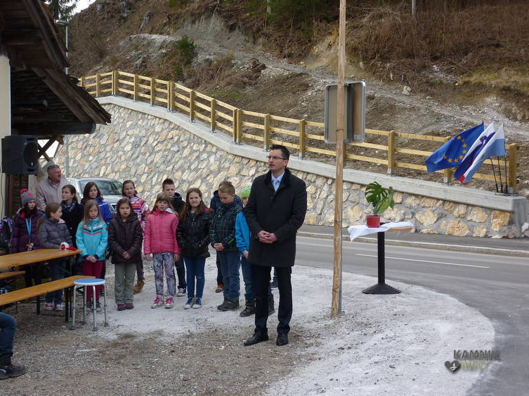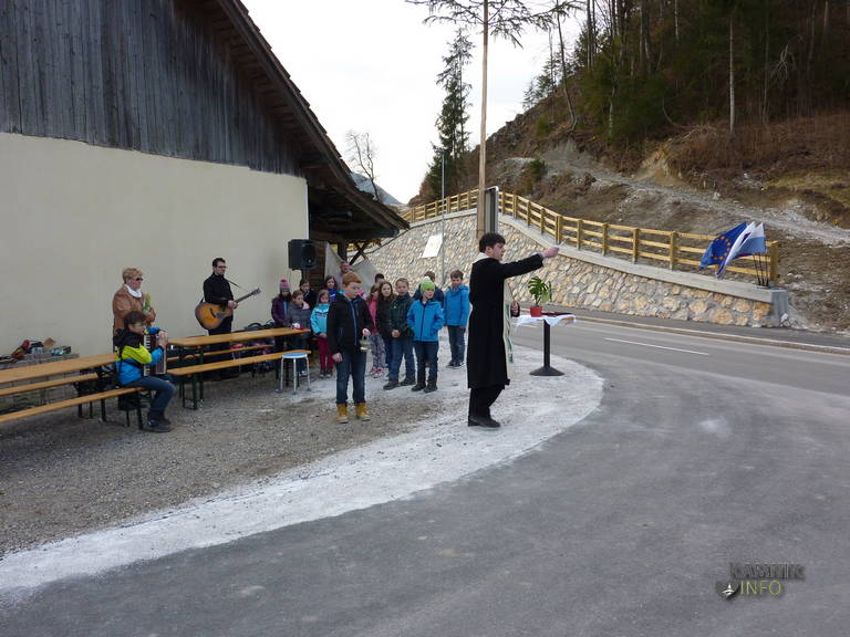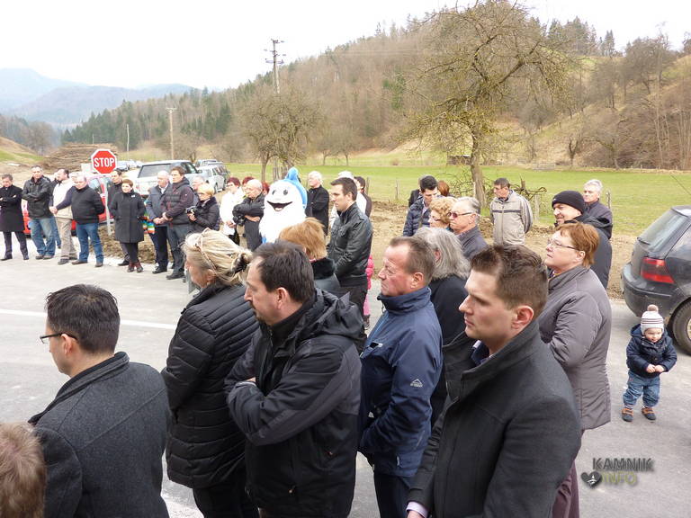 Potok, 13. 3. 2015 – Danes popoldan je bil, v sklopu prireditev ob počastitvi občinskega praznika, z manjšo slovesnostjo in blagoslovom, v Potoku v Tuhinjski dolini tudi uradno odprt nov uvoz na cesti, ki z regionalke vodi proti vasi Snovik.