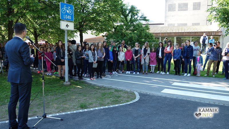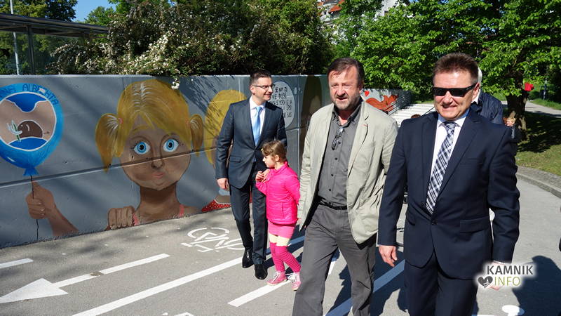 Prenovljeni podhod so, s simboličnim prerezom traku, družno odprli ravnatelj OŠ Frana Albrehta Rafko Lah, Tina Plahutnik, Anamarija Erčulj ter župan Marjan Šarec, kako in na kakšen način je prišlo do realizacije projekta, pa je ob odprtju predstavila svetovalna delavka OŠ Frana Albrehta Kamnik, Tina Plahutnik, ki je povedala: