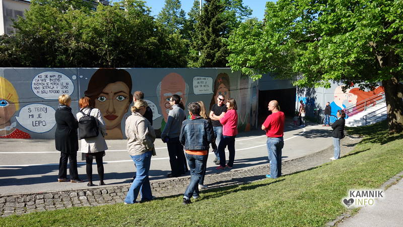 Devetošolci, dekleta in fantje, ki obiskujejo izbirni predmet LIKOVNO SNOVANJE 3, so pripravili šest osnutkov, idej s skicami. Šola je skupaj s predstavnico v Svetu staršev in predstavnikom Občine Kamnik izbrala eno idejo. Temu so sledili intenzivni tedni urejanja podhoda, okolice in stopnic, za kar je poskrbela Občina Kamnik in izvajalci del. Učenci in učenke so izdelali šablone za obraze in izbrali verze, pozitivne misli, ki so jih kasneje zapisali na stene podhoda. Po ureditvi podhoda so 22. 4. 2016 začeli slikati in delo končali 13. 5. 2016.