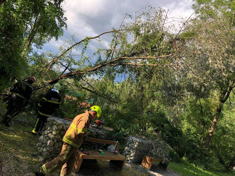 Spričo tega so gasilci nevarno območje sprehajalne poti, kjer je nameščena tudi ena izmed klopc, zaščitili z opozorilnim trakom, medtem ko so za nevarna drevesa, po obvestilu poveljnika občinskega štaba Civilne zaščite, že navsezgodaj zjutraj poskrbeli delavci Komunalnega podjetja Kamnik.