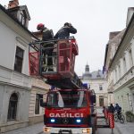 Vrli gasilci PGD Kamnik so najprej začasno zaprli cesto, nato pa, s pomočjo gasilske avto-lestve in mačjo spretnostjo, kaj hitro na novo namestili zrahljane strešnike oz. nekaj bobrovcev odstranili ter s tem poskrbeli za odstranitev preteče nevarnosti, tako da se lahko skozi središče Kamnika znova spokojno sprehodite tudi brez čelade.