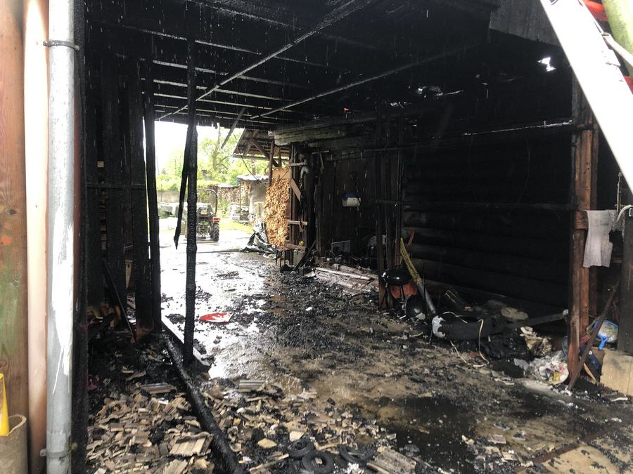 Ognjeni zublji, ki so zajeli zabojnika za smeti, so uničili tudi bližnjo drvarnico ter se razširili na podstrešje stanovanjskega objekta.
