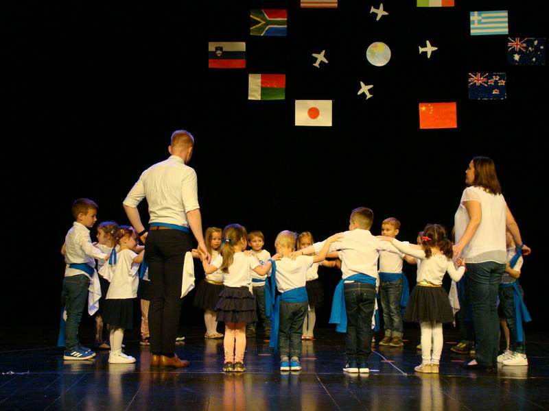 Najmlajši otroci iz skupine Lunice so predstavili domačo deželo – prelepo Slovenijo. Potem pa je vsaka naslednja skupina stopila čez mejo, otroci iz starejših skupin pa kar preko oceanov. Tako so bosonogi Sončki zaplesali afriški ples. Otroci iz skupine Kresničke so za kratek čas obiskali Ameriko, zaplesali indijanski ples in se podali še na ulice Ria.