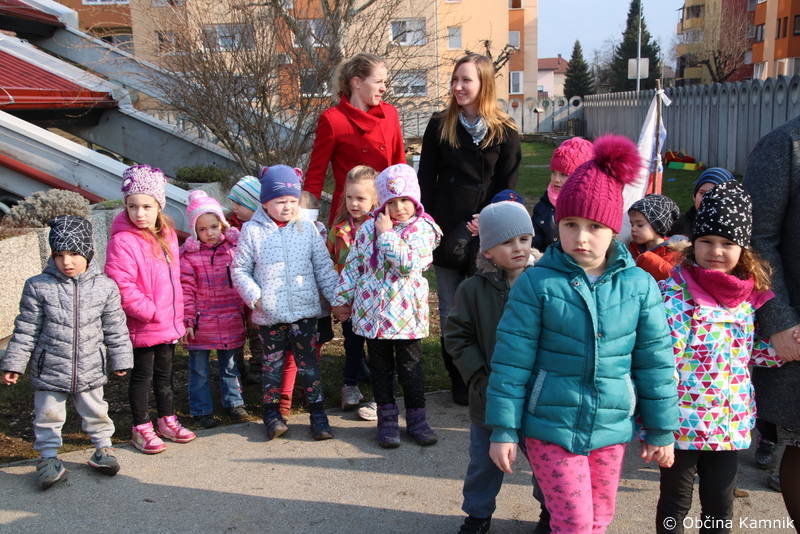 Zbrane ob novem otroškem igrišču je naprej pozdravila ravnateljica Vrtca Antona Medveda Kamnik mag. Liana Cerar, podžupan Igor Žavbi pa je nadobudnim otrokom ob njihovem novem igrišču zaželel obilo zabave in prijetnega druženja, kjer se bodo počutili sproščeno in svobodno. Poudaril je tudi to, da naj otroci v poplavi medijev in interneta lepe trenutke čim več časa preživljajo na prostem, pri vsem tem pa ni zanemarljiv tudi socialni in telesni razvoj otroka ob uporabi takšnih igrišč.