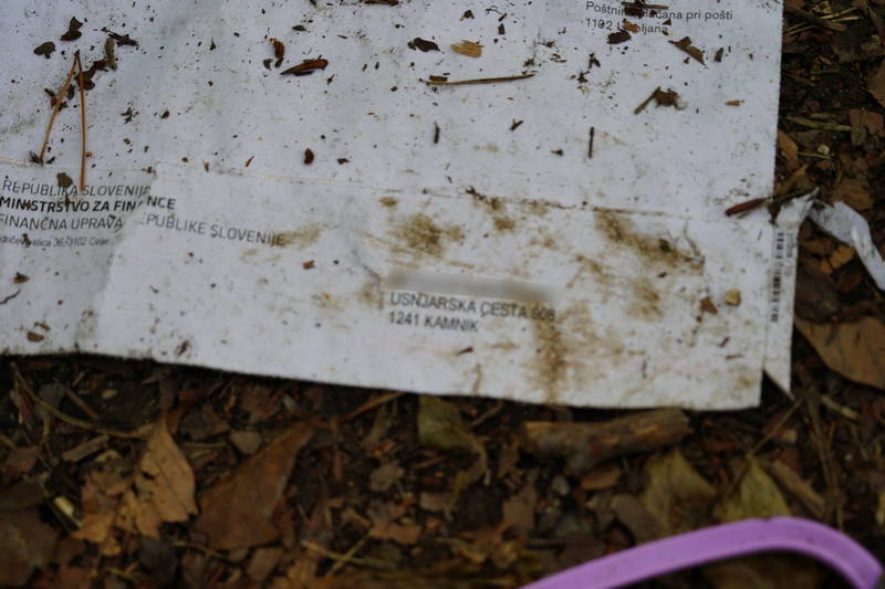 Občinski redarji in policisti pa utegnejo imeti tokrat z izsleditvijo nemarnega onesnaževalca, ki je v gozd pripeljal zadnji, najbolj svež kup smeti, nekoliko lažje delo, kajti med odloženo nesnago je, poleg vsega ostalega, mogoče najti tudi nekaj kuvert z naslovi, ki kažejo, da se poreklo odpadkov bržkone nahaja na Usnjarski cesti 8 v Kamniku.