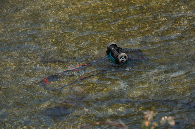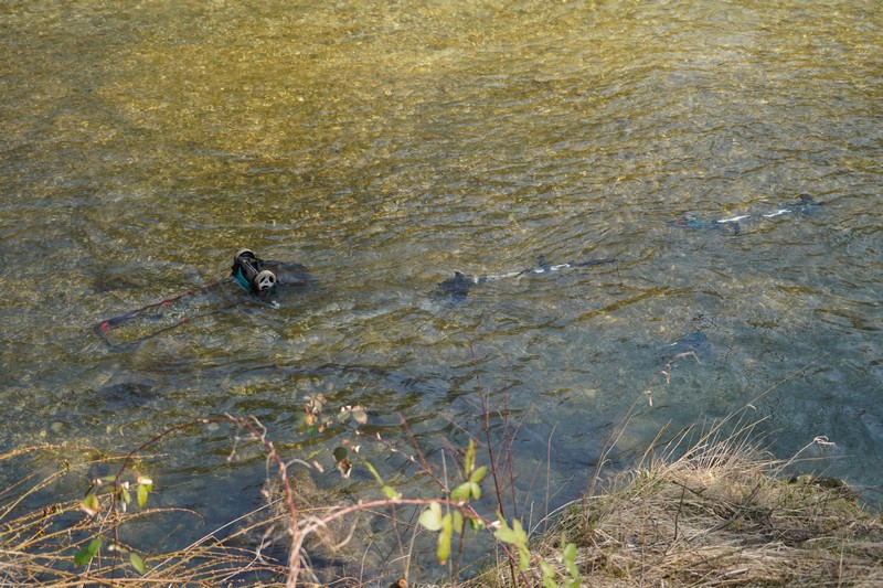 Očitno tatinski tolovaji, ki so ukradli kolesa in orodje, niso zgolj nepošteni, ampak tudi precej škododelno zlobni, saj ukradenega orodja, ki najbrž ni ustrezalo njihovi zlikovski izbirčnosti, niso odvrgli oz. odložili kje na suhem, ampak so ga zlonamerno raje uničili s tem, da so ga odvrgli v reko.