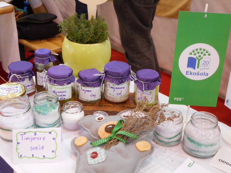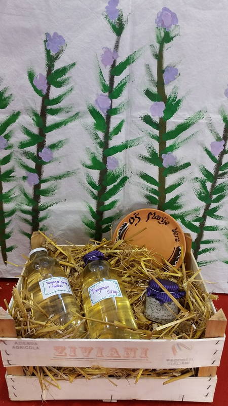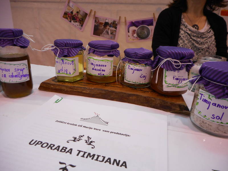 Timijan smo tako uporabili pri pripravi timijanovega sirupa, timijanovega mlečnega namaza, timijanovega olja, timijanovega medu, naredili smo sveži sir s timijanom, timijanovo maslo, medenjake s timijanom, polnozrnat pirin kruh s timijanom in timijanov čaj. Na stojnici smo te jedi tudi predstavili. Poleg tega smo v šoli naredili tudi kopalno sol s timijanom, mila in sveče s timijanovim eteričnim oljem, timijanovo masažno olje ter timijanov sirup za izkašljevanje, kar smo na stojnici uporabili za dekoracijo in dišavo. Vse to smo dopolnili tudi s plakatom in brošuro o timijanu. Učenci so obiskovalcem izčrpno predstavili uporabo timijana in ponudili timijanove jedi. Razveselil nas je tudi obisk kuharskega mojstra Bineta Volčiča.