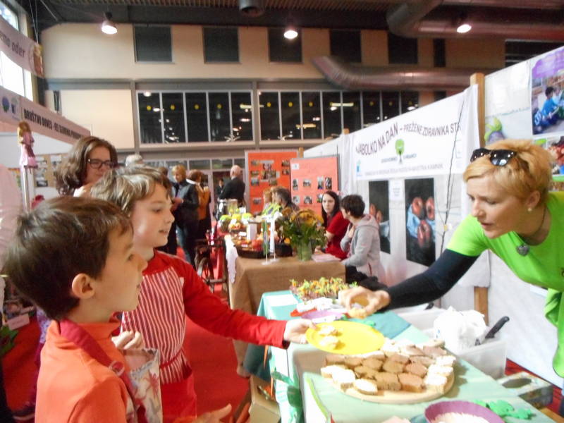 Na demonstracijskem odru so prikazali pripravo različnih namazov, ki jih pogosto pripravijo tudi pri interesni dejavnosti Šolski ekovrt. Prva skupina je pripravila tri mlečne namaze: s pehtranom, s čebulo in s korenjem, druga skupina pa je pripravila čičerikine namaze: s kumaricami, z zelišči in s česnom. Na koncu so jih ponudili obiskovalcem sejma.