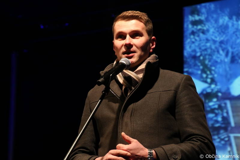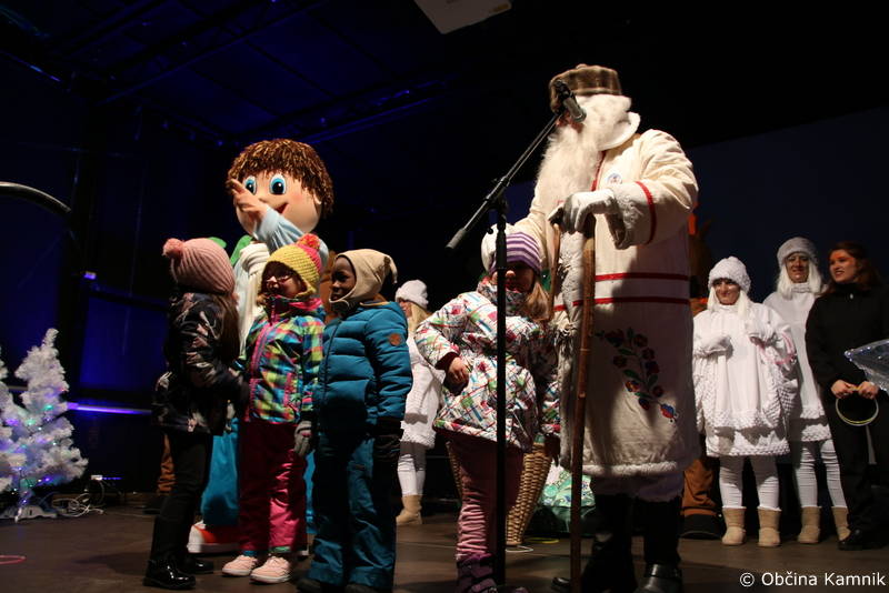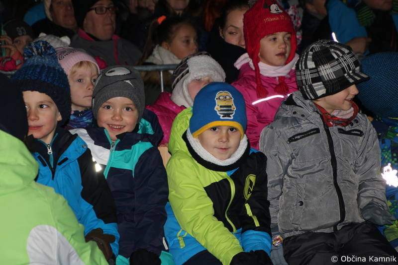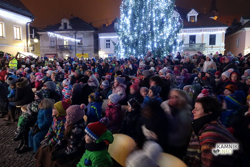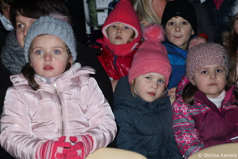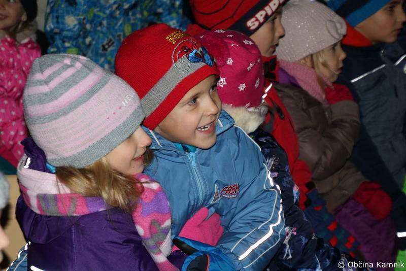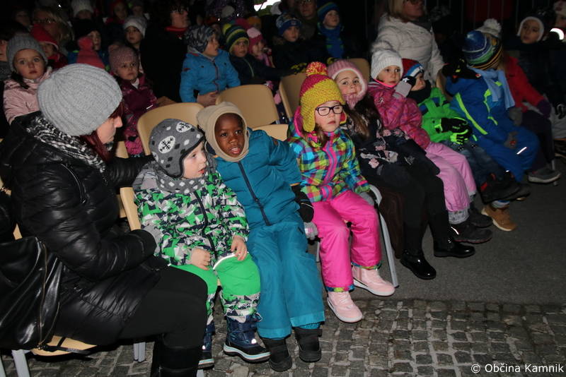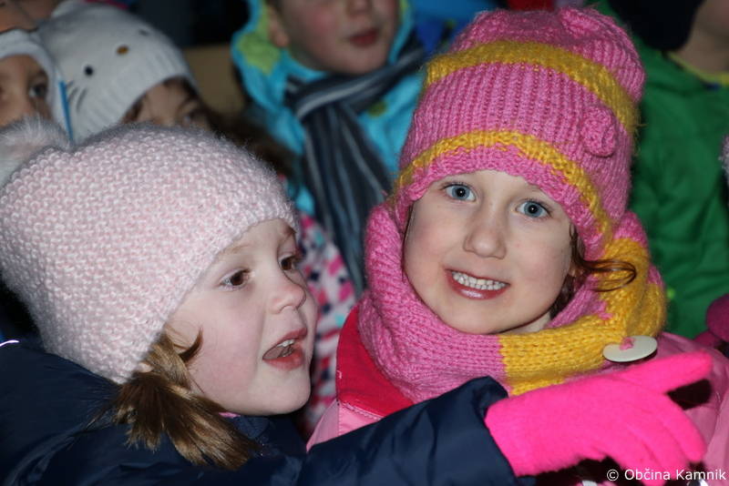Praznično vzdušje se je ob 17. uri odvijalo na Glavnem trgu, ki ga je napolnil Otroški pevski zbor Vrtca Antona Medveda Kamnik, zbrane pa je ob tej priložnosti z lepimi željami pozdravila ravnateljica Vrtca Antona Medveda Kamnik mag. Liana Cerar. Tudi podžupan Matej Slapar se je pridružil dobrim željam ravnateljice in otrokom ter obiskovalcem zaželel lepe misli ob zaključku leta z željo, da bi bili med seboj prijatelji.