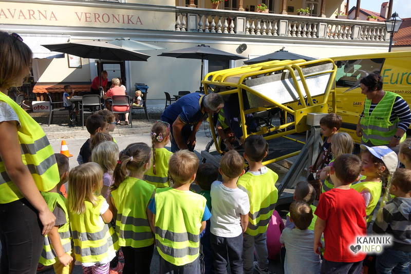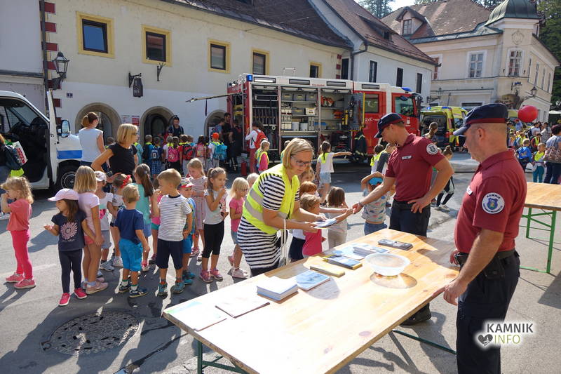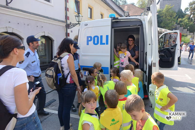 V spremstvu svojih učiteljic in vzgojiteljic so otroci izkoristili enega izmed poslednjih lepih dni poslavljajočega se poletja ter si ogledali številne zanimivosti, ki so jim jih pripravili: redarska služba Občine Kamnik, gasilci Prostovoljnega gasilskega društva Kamnik, reševalci Društva gorske reševalne službe Kamnik, reševalci Zdravstvenega doma dr. Julija Polca Kamnik, policisti Policijske postaje Kamnik in Postaje prometne policije Ljubljana, člani AMD Kamnik, člani ZŠAM Kamnik, članice in člani Šole zdravja.