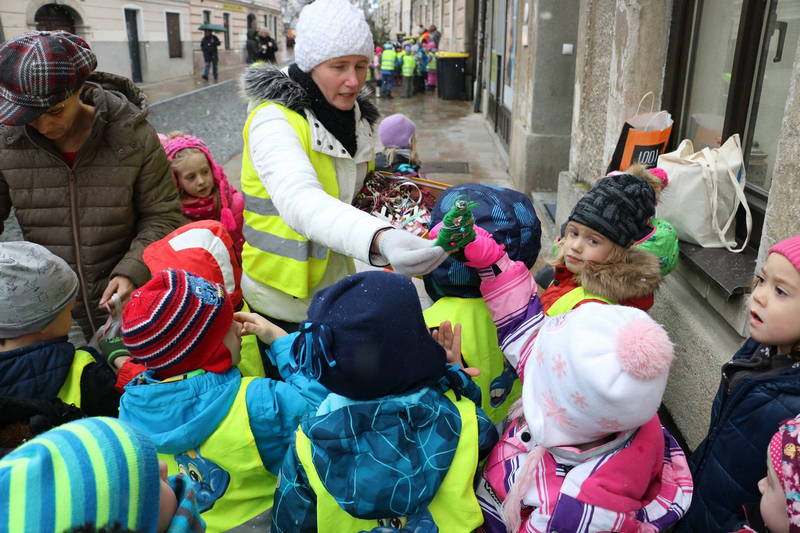 Otroci iz kamniških osnovnih šol in vrtcev so tudi letos okrasili novoletne smrečice na Šutni.